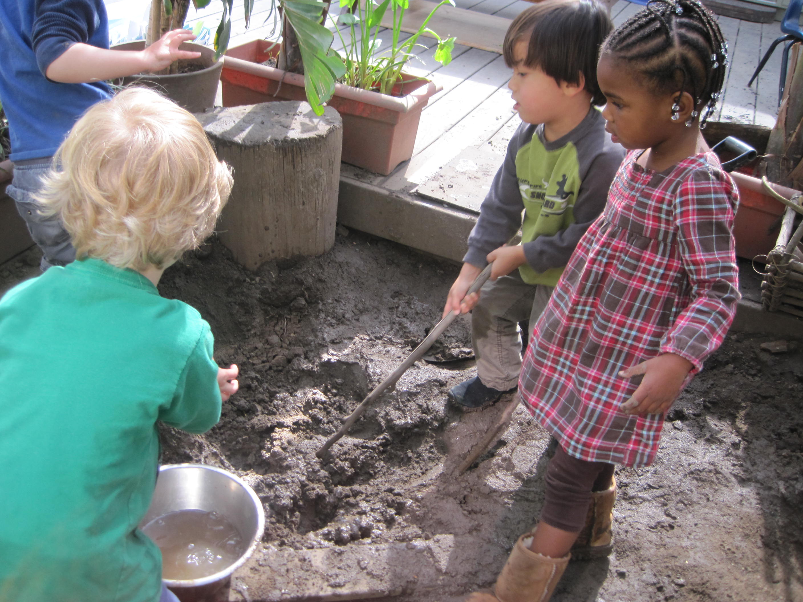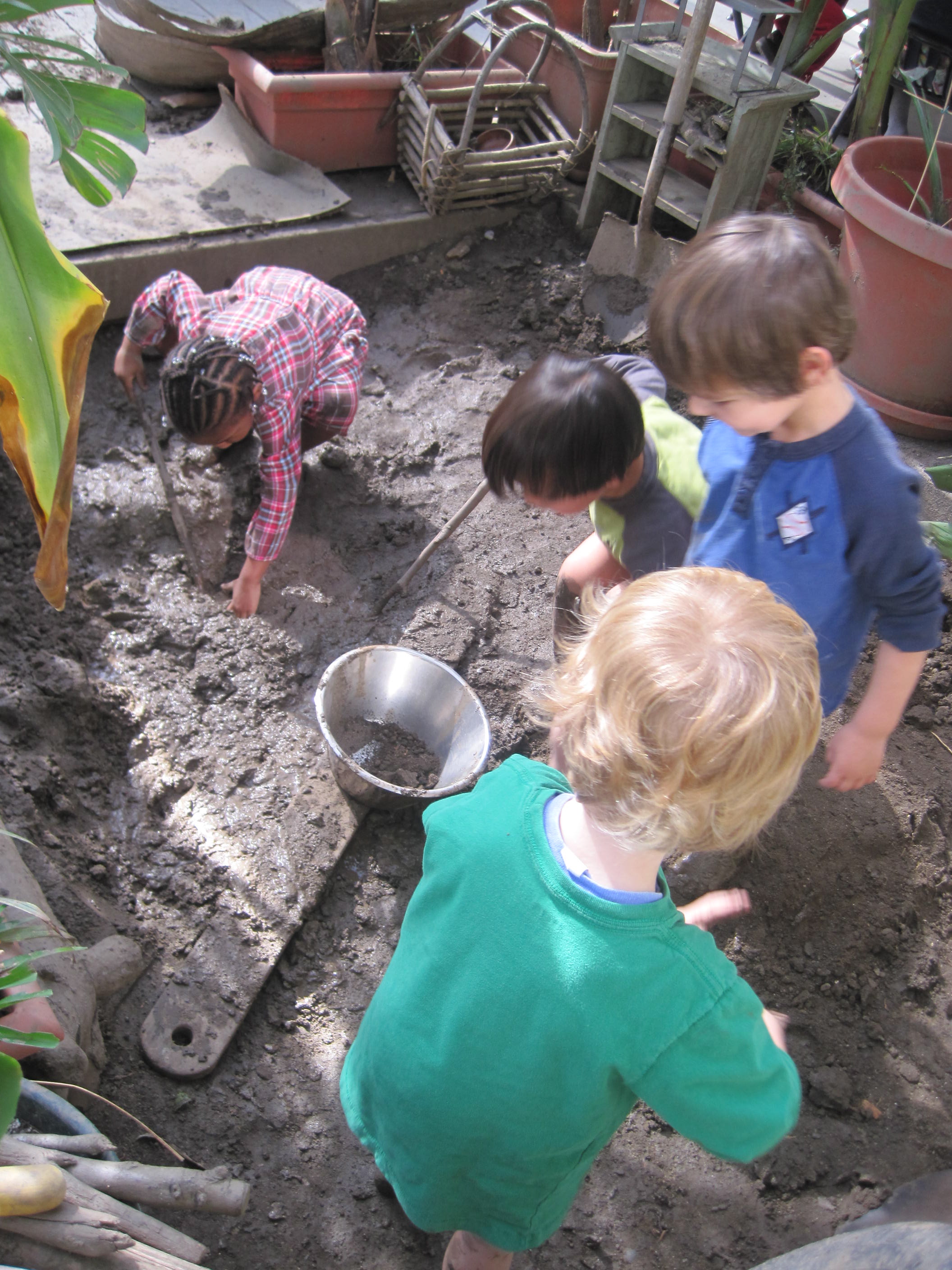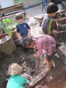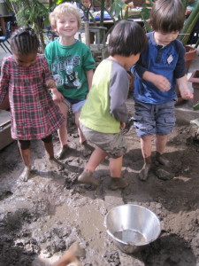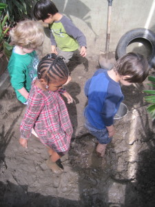 Some children are hesitant when assigned to areas where they will get themselves dirty. Flora observed a group of children who’d expressed a dislike of dirty things. She intentionally assigned them to the mud pit – a very dirty place. Wondering how they would approach their concern and discomfort with getting dirty, Flora observed.
