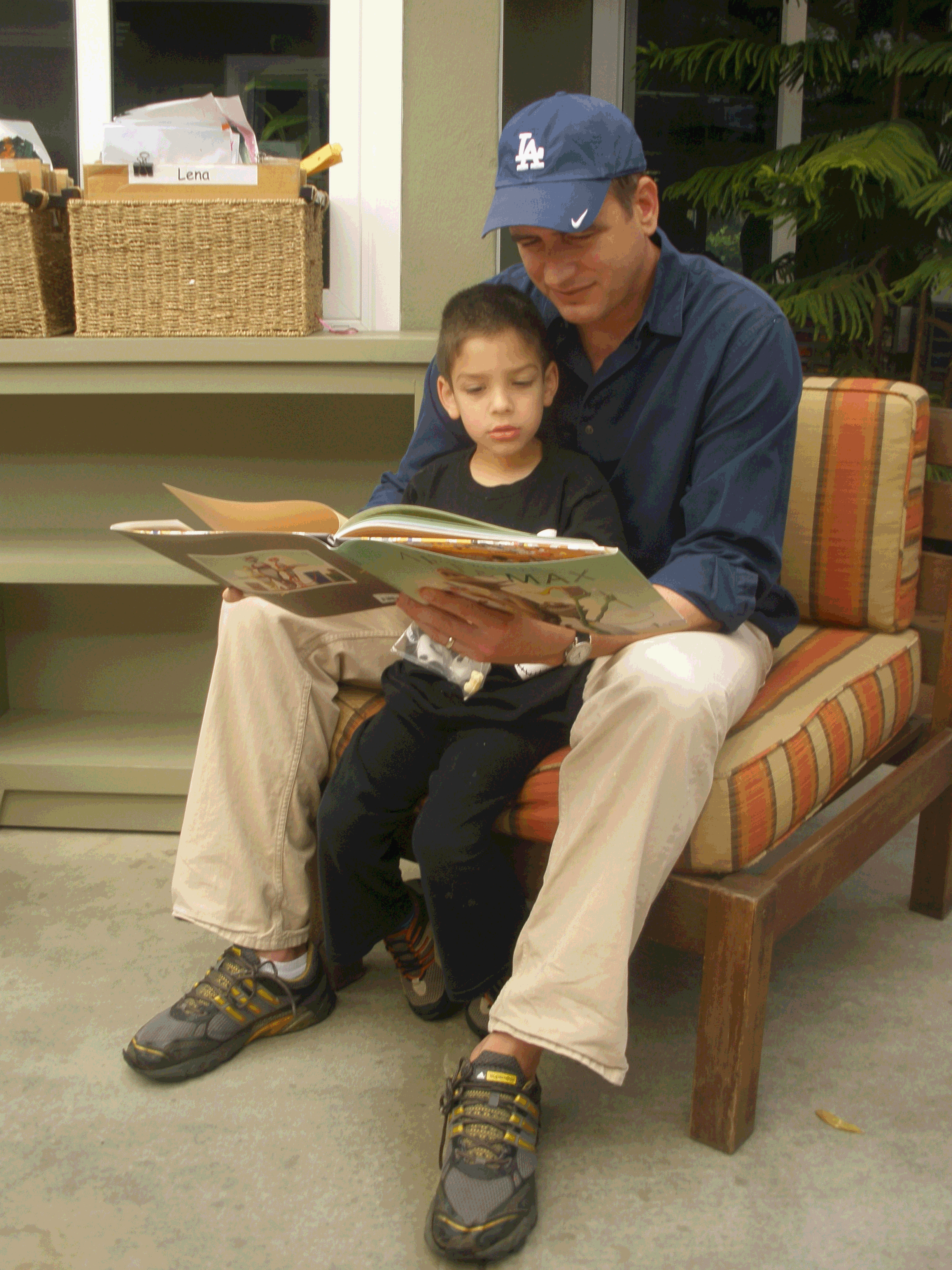 Blue- My daddy read books. I like the book called Sitting Duck.