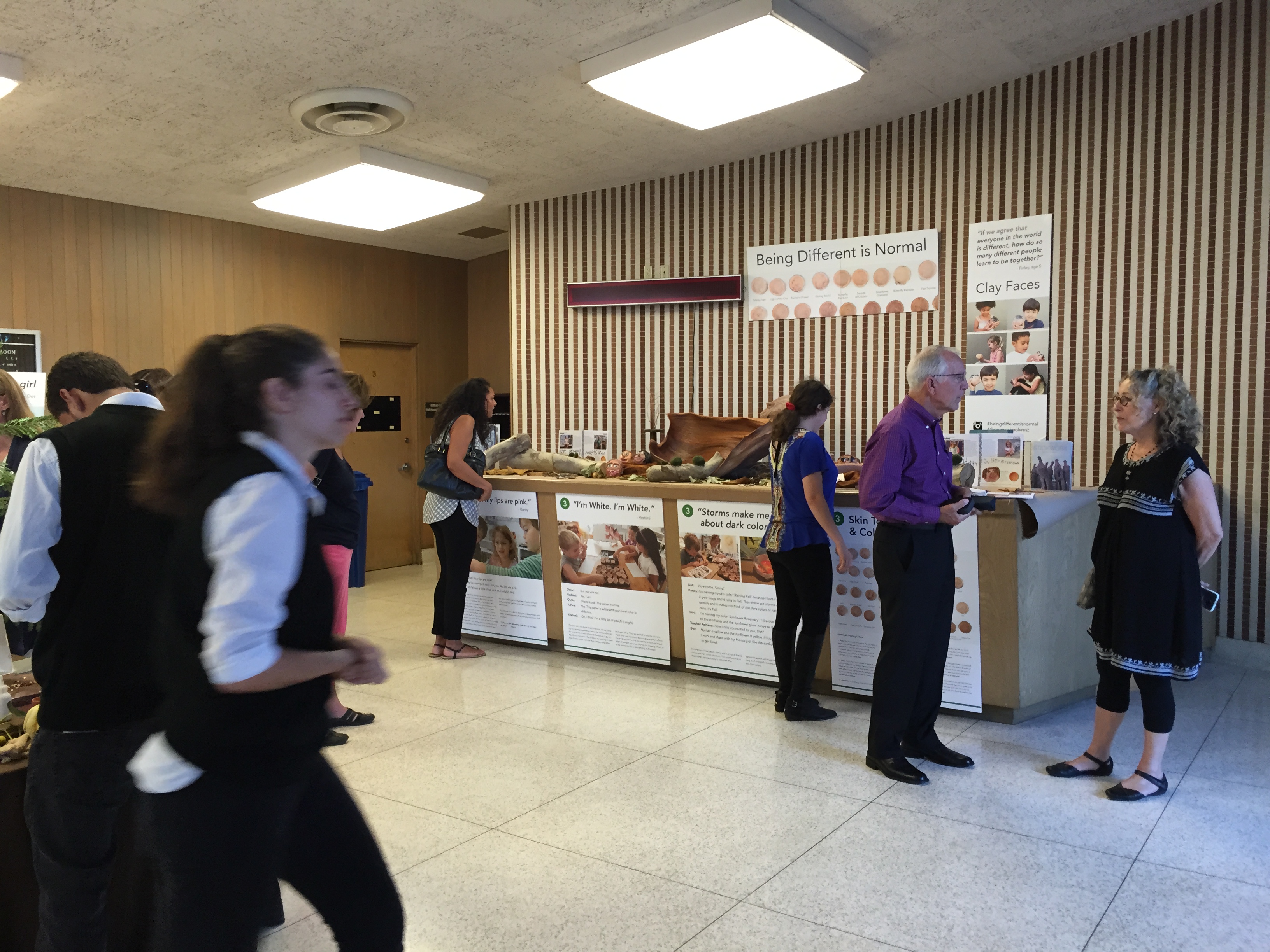 Being Different is Normal: a 2015 graduate class exhibition about the joy of difference has travelled. Beginning at the Pedagogical Institute, it moved to the MVCC Municipal Building in Westchester where we presented to community members and other educators. After that we were invited to install the work at East Los Angeles College and presented to early childhood education students during their diversity seminar. It is currently slated to appear at Mar Vista Art Walk to engage our neighbors and community members with a new image of children.