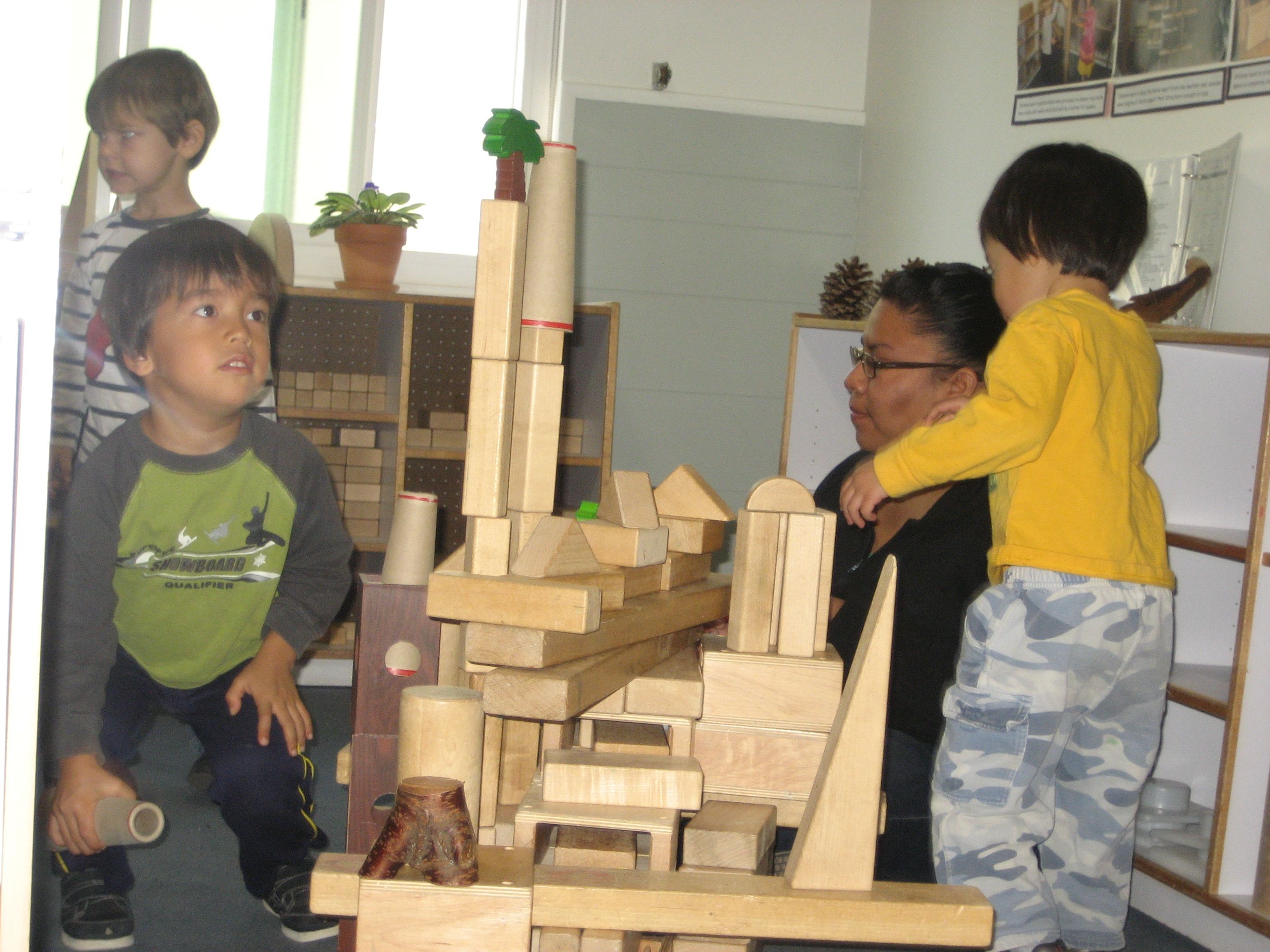 On Back to School Night, parents were offered areas in which to work to discover the properties of materials their children use each day. In the block area, a provocation was left by the parents for the children to discover.
