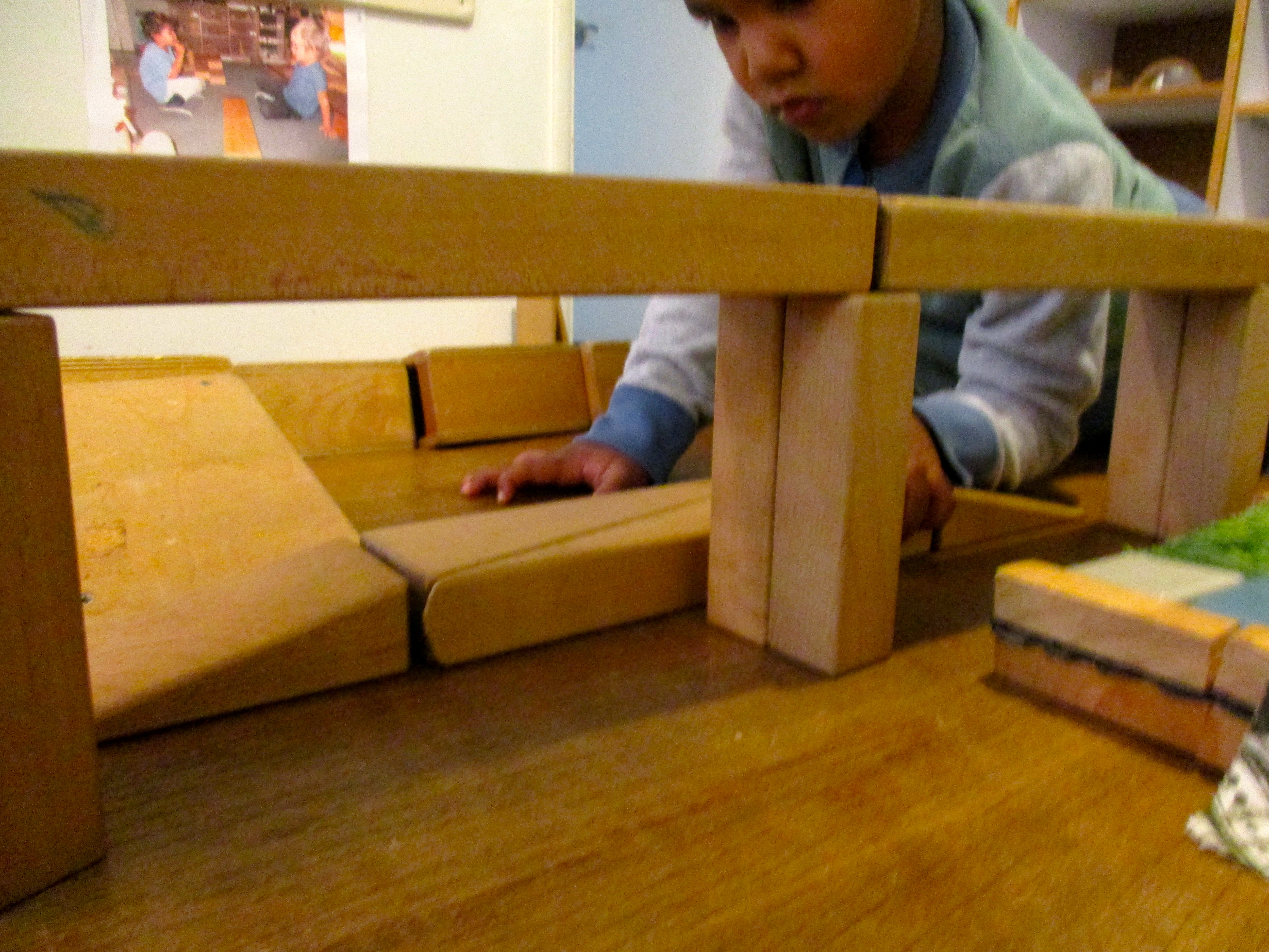 Jacob: I can make a bridge and the train tracks. Let’s get the animals. All the animals are going to ride the train.