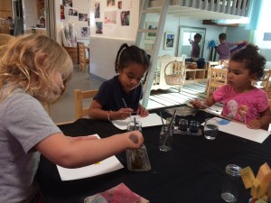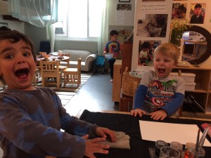 We’ve talked about feelings, named them, defined them… but then we wondered: What does a feeling look like? We’ve explored photography, tracing, and then we introduced watercolors. The draw of choosing their favorite colors revealed how children quickly confronted that an intention can get lost in expression. Our meaning can be misread, misinterpreted, misunderstood. Color can mean different things to different people. Contrary to the movie and idioms, yellow does not mean happy to everyone, “feeling blue” doesn’t resonate with every child as being sad. If someone’s favorite color is red, it might make them feel happy rather than angry. Green with jealousy might not connect with a child who feels reminded of nature when they see green.
