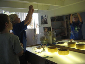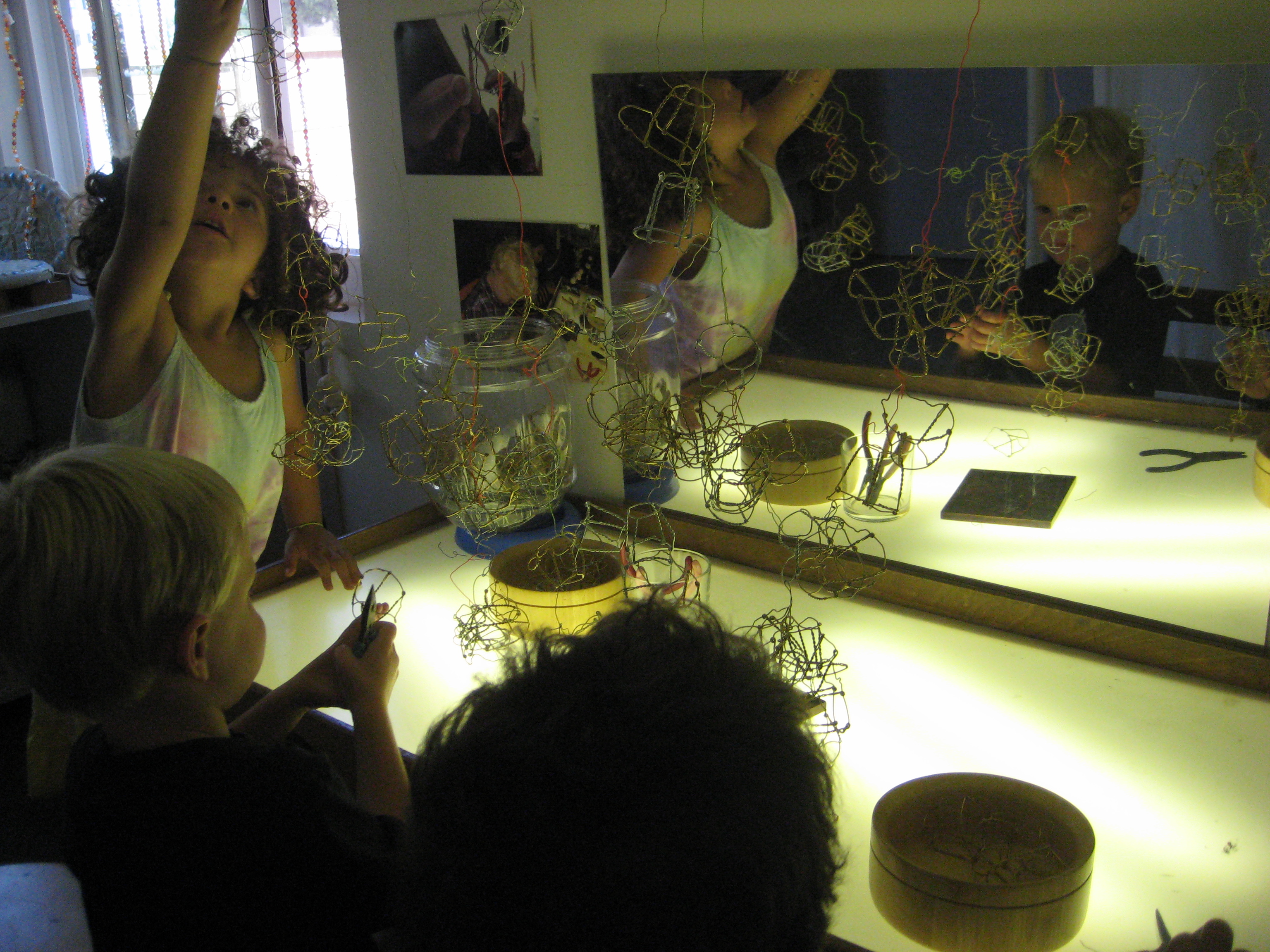 As an avenue to extend the children’s wire exploration, Cindy set a mixture of wire and other materials up on the light table. Two children sat side-by-side working independently until they felt they were done.