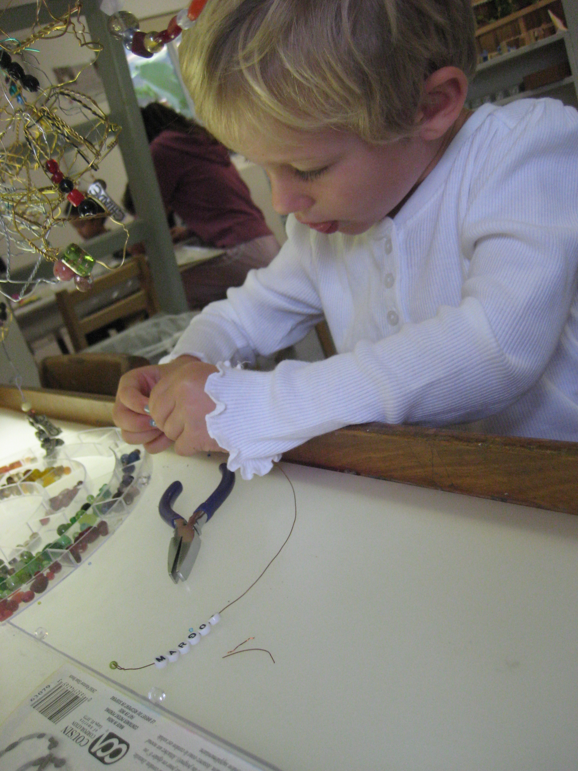 Twisting, bending, beading and connecting wire sharpens eye-hand coordination.