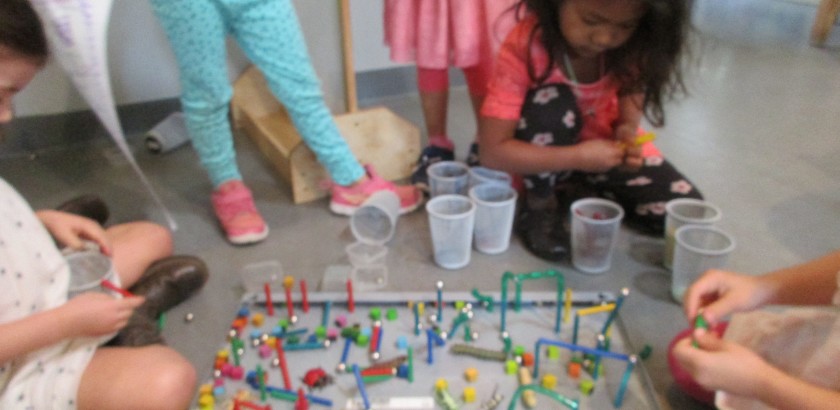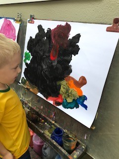 Just as there are systems for mixing paints at the easel, so are there systems for using the space. Emilio is engrossed in careful painting with multiple colors. He has taken one pot of mixed paint from the shelf, loads a clean brush, paints, then washes and dries his brush before returning the color and…