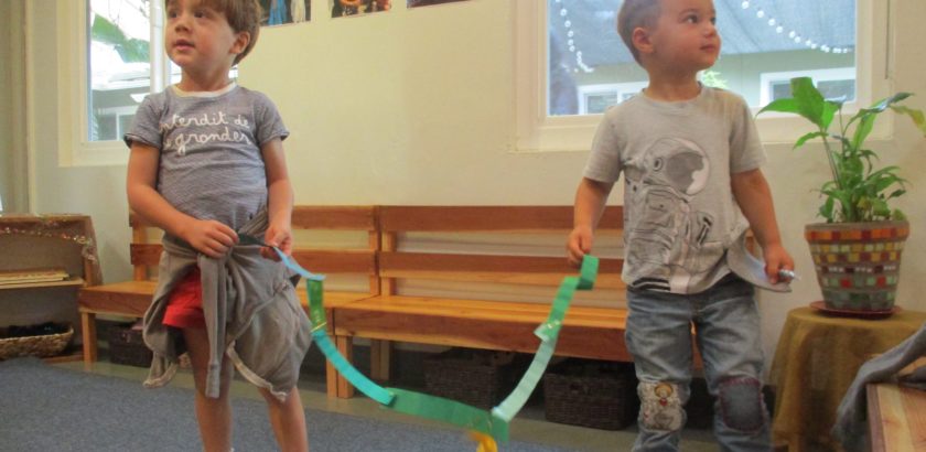 In the Atelier, a light and shadow exploration is offered by incorporating overhead projectors and multiple white materials. As with all materials, we wonder how the experiences will support the children in building relationships. Initially, some children move to the overhead projector and begin to manipulate the materials to project on the walls. Others are…