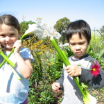 We prepared beds and planted carrots, leeks, and cilantro. The children took turns watering with a watering can and hose. They made bouquets of lilies, cosmos and chamomile and harvested carrots, lettuce, kale, and celery.