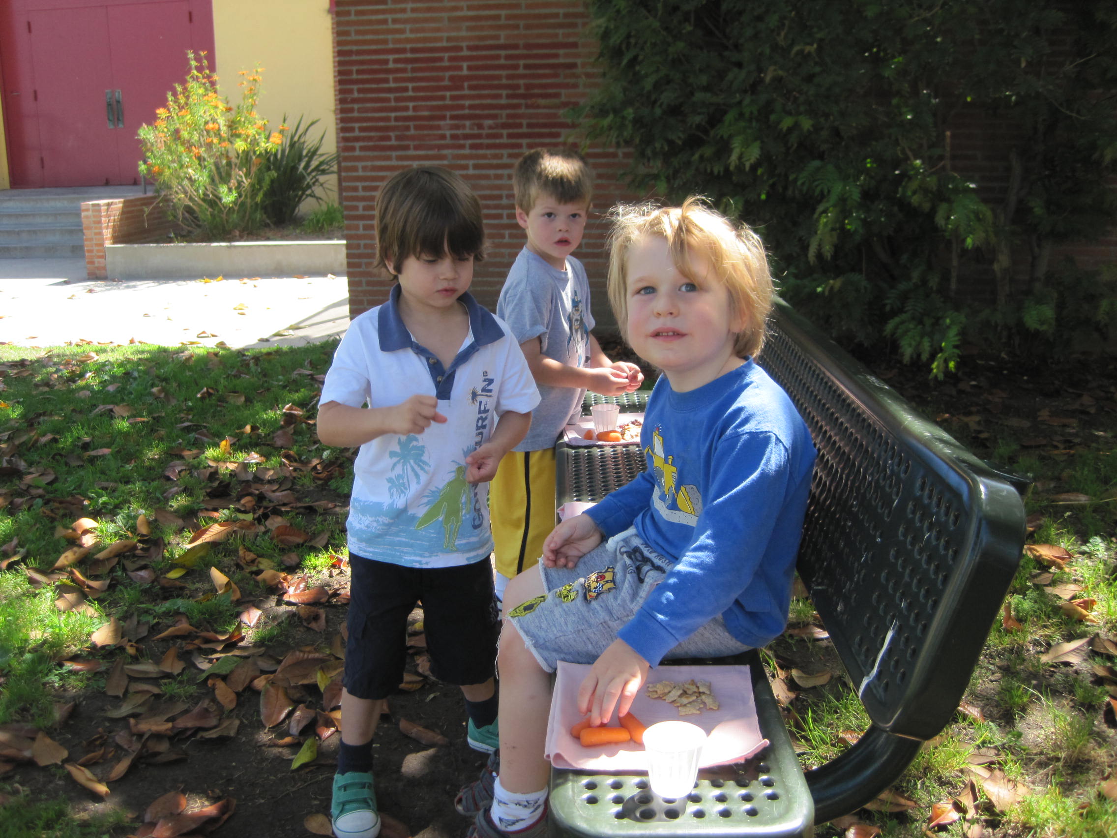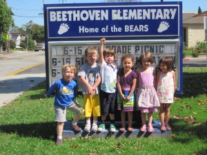 We have been walking over to Beethoven Elementary school and talking to the children about the areas, noticing the building and different parts that compose such a big school.  The children and teachers have been going on these walks both in the morning and afternoon.  We have snack there and take some time to explore the grassy area in front of the auditorium.