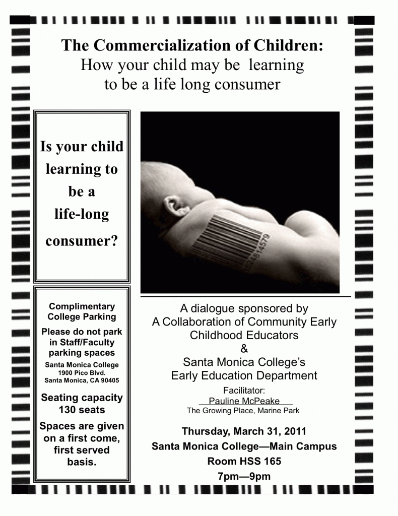 Children and advertising – a discussion Announcements nswparents / March 6, 2011 / 0 Comments Join Roleen, who will be on the panel of the West Los Angeles Preschool Collaborative for a group discussion following the screening.
