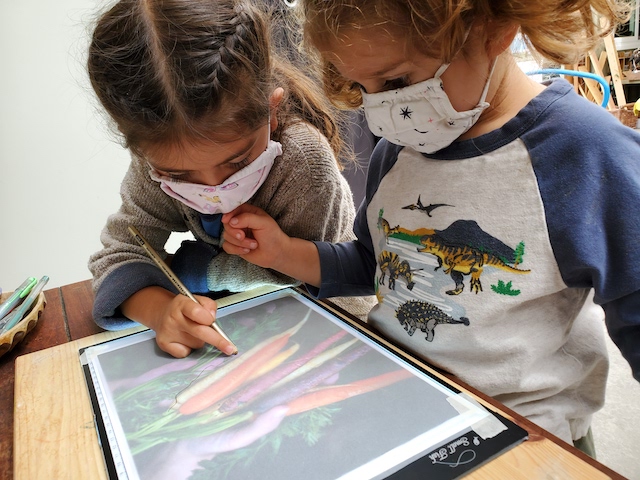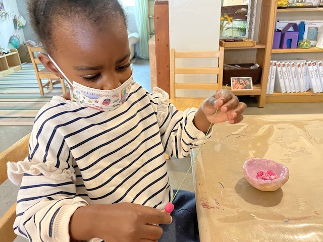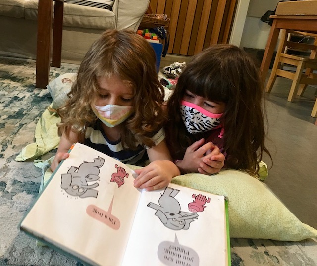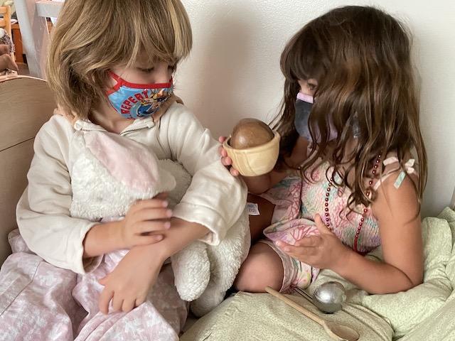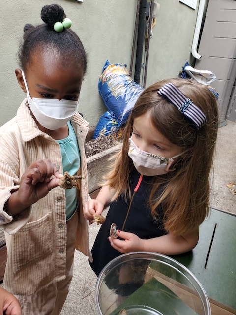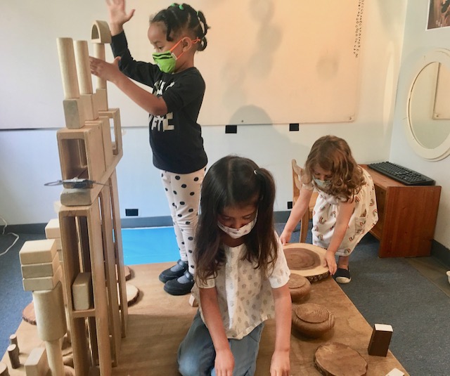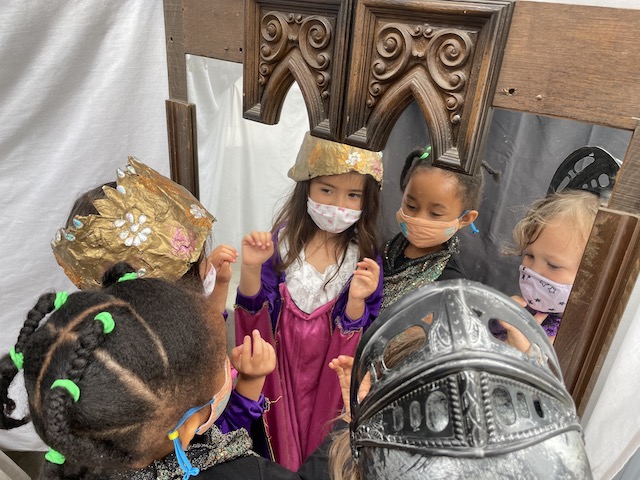 Jack’s parents, Michelle and Pete, sent us a recording of them reading the book, After The Fall (How Humpty Dumpty Got Back Up Again) by Dan Santat, a children’s book about resilience and believing in yourself after a hard fall. We pulled down our projector screen on our wall by the Communication Center, and we hooked up our projector to a laptop. We dimmed the lights, moved the magnet-stick table to create an open space on the rug and invited the children for the viewing. The children loved seeing Michelle and Pete projected. Thank you both for reading us the story — and for the delicious pizza that we enjoyed at lunch as a special treat. Our hearts and tummies are full!