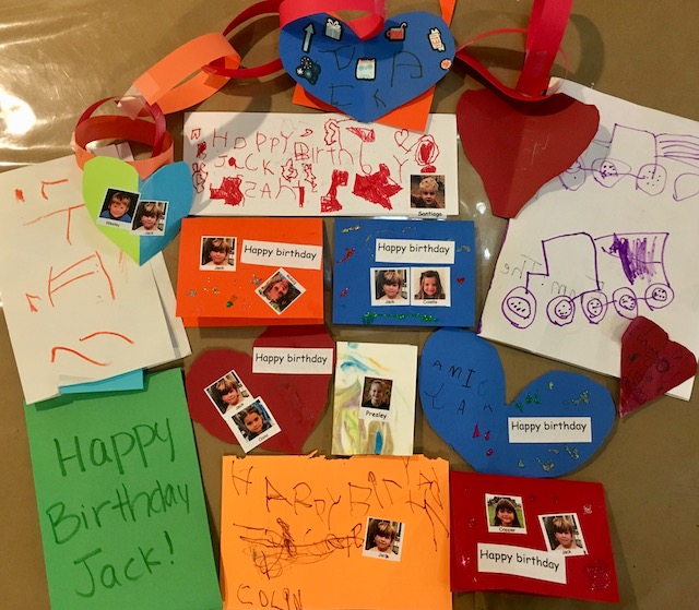 In addition to sharing some of their favorite memories, the Cilantros all made birthday cards for Jack — and so did the Aloe Veras and the Basils. As we were reading the cards, the Happy Birthday song rang through our dividing doors. It was the Dandelions! They too surprised Jack with a group birthday card.