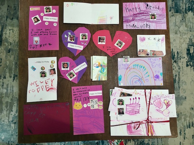 Party, party, party! On Friday, June 4th, we celebrated Copper’s 4th birthday. The school was buzzing once they found out that Copper likes rainbows. Birthday cards from all the other pods came flooding in leading up to Copper’s birthday, (May 29th) and after! The Cilantros also designed and made birthday cards. Some children took the task upon themselves to write out names and happy birthday, instead of gluing with our small ID pictures and word phrases. For lunch, Copper’s family treated us all with delicious pizza! Thank you, Amelia and Dex!