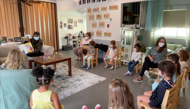Last Friday, June 11th, we welcomed Xosha, Saturn’s mom, for our very first birthday book read in the Cilantro classroom! Knowing that Saturn loves music and movement, we invited Xosha to join us in our morning movement song, Hello Hello! Can You Clap Your Hands? We then followed with singing Happy Birthday to Saturn. For Saturn’s birthday book, Xosha read one of the Cilantros’ favorite books, There’s A Monster At The End Of This Book with the bonus story, There’s Another Monster At The End Of This Book!  Elmo makes a special appearance with the lovable, furry Grover. Thank you, Xosha, for the fun monster voices and goody bags for all the children!