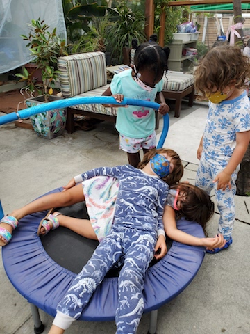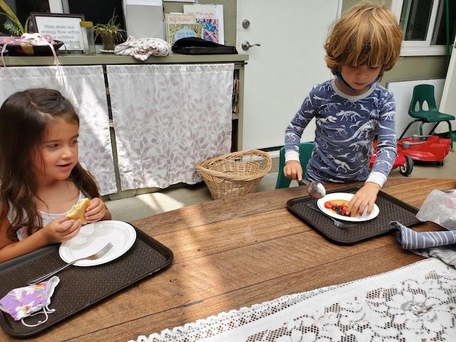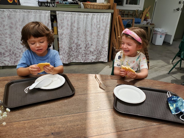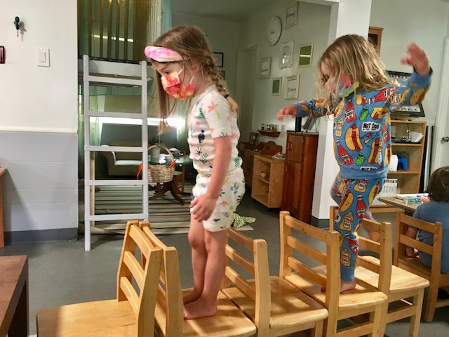 Even those of us who were not wearing PJ’s embraced the spirit of the play. We shared lots of snuggly reading time together, enjoyed our pancakes with whipped cream smiles, and invented games kept with the pajama theme. One game started with everyone running, then freezing and pretending to fall asleep when someone yelled, “Naptime!” When another child shouted, “Wake up time,” the game repeated. These children are so creative and never miss a beat to find ways to play and laugh together. It was a joyous morning!