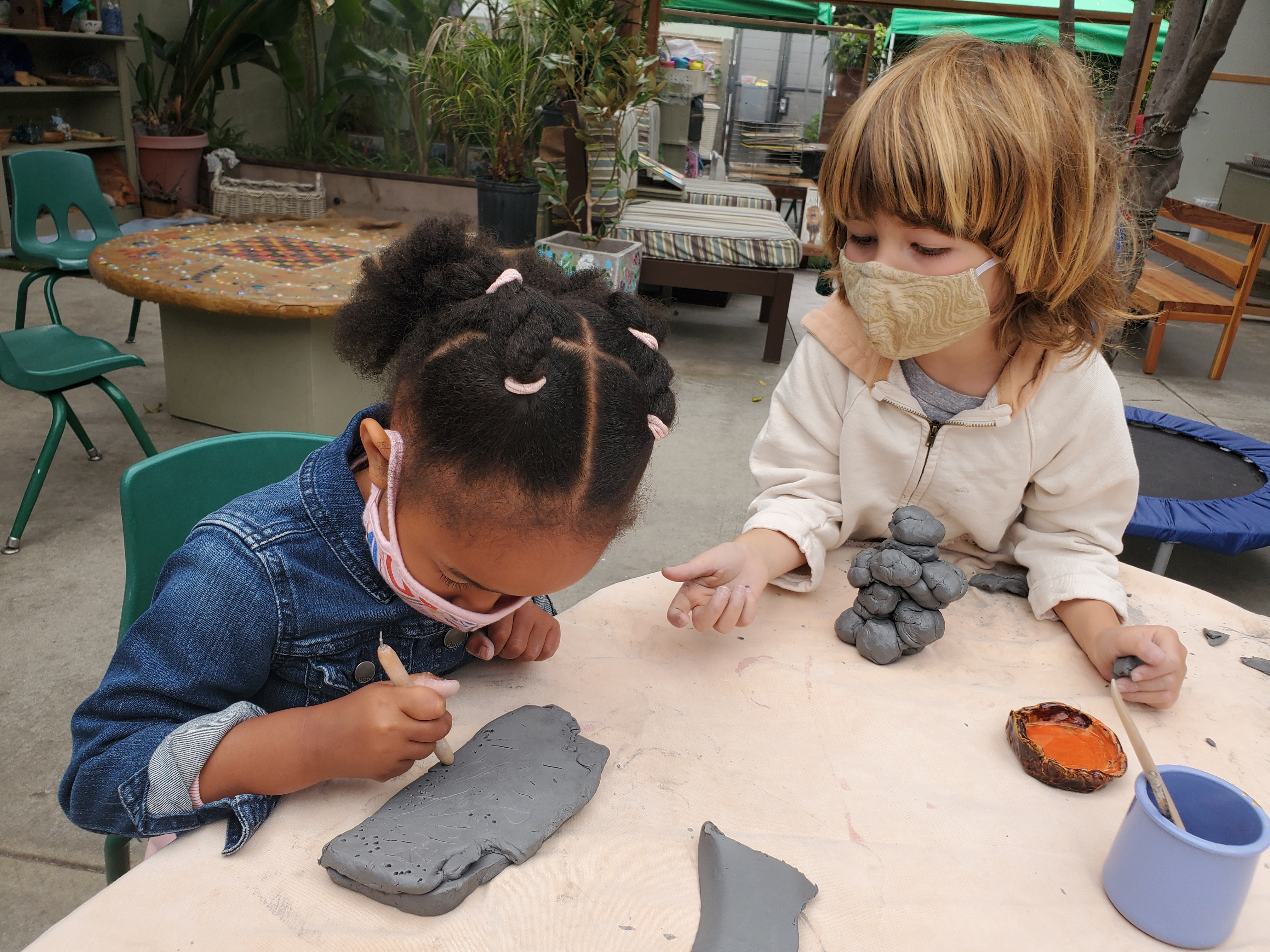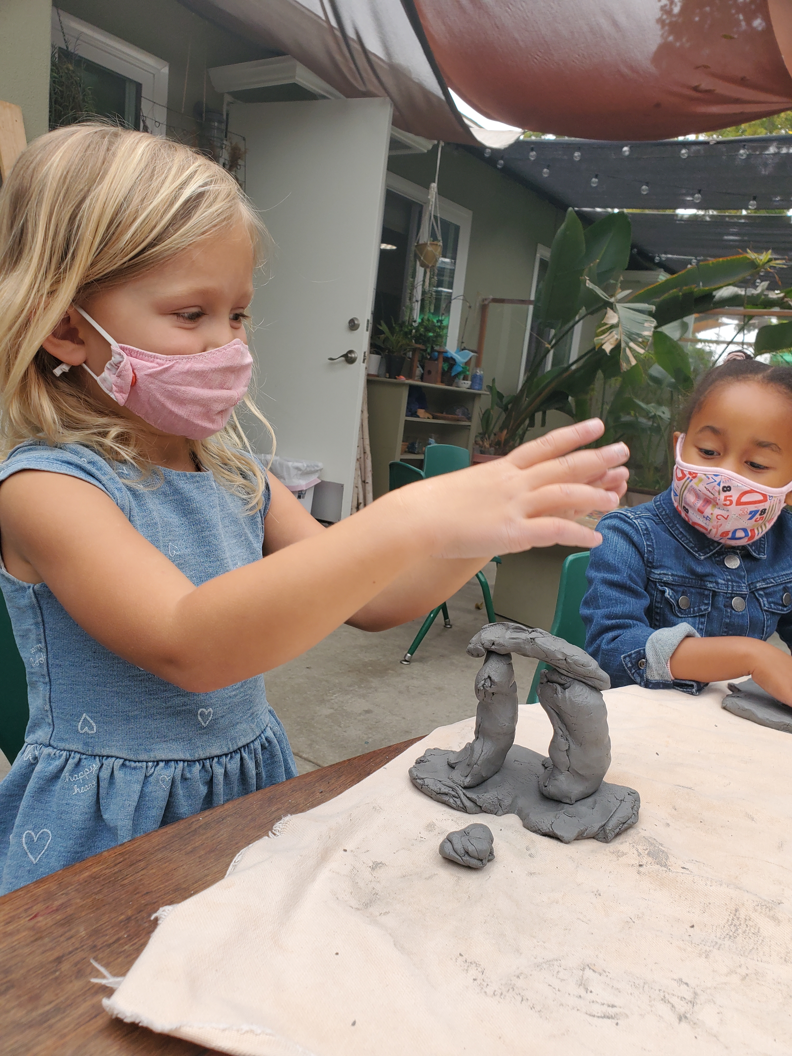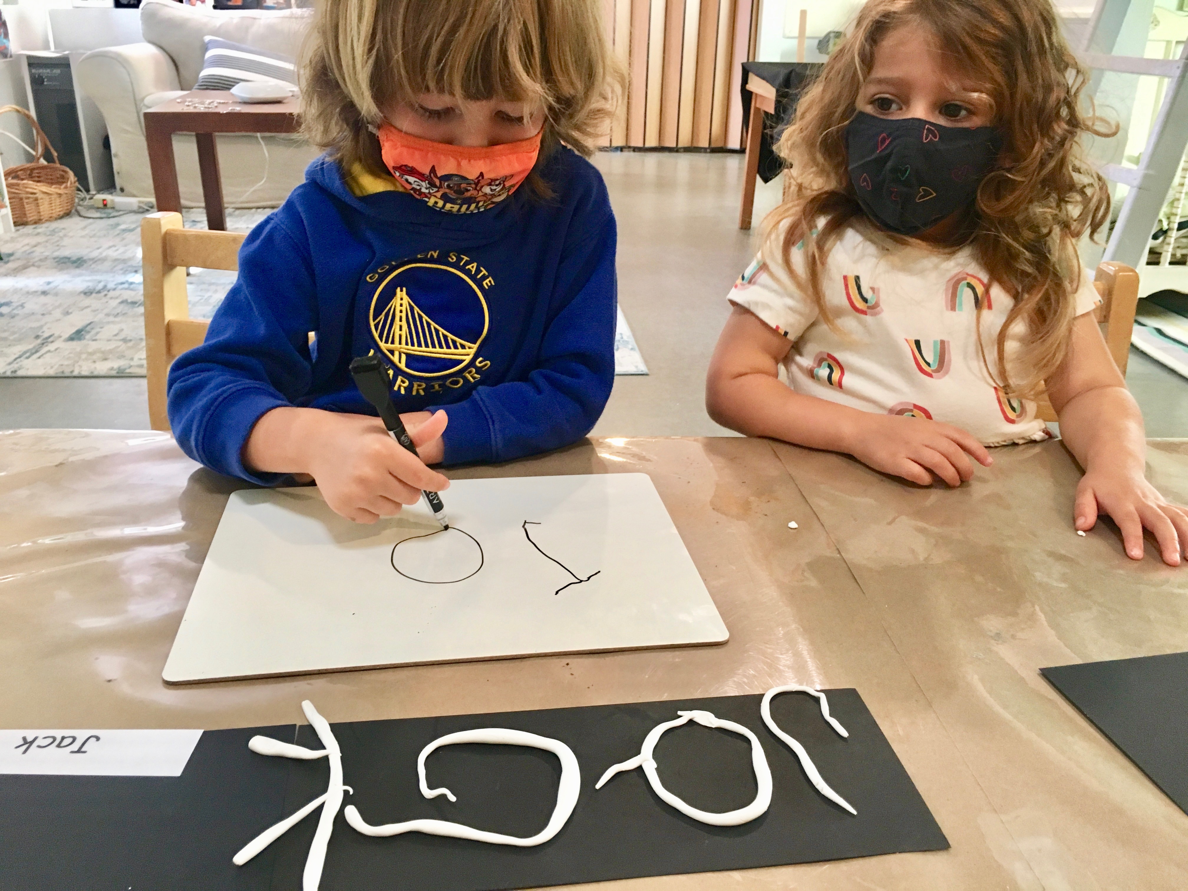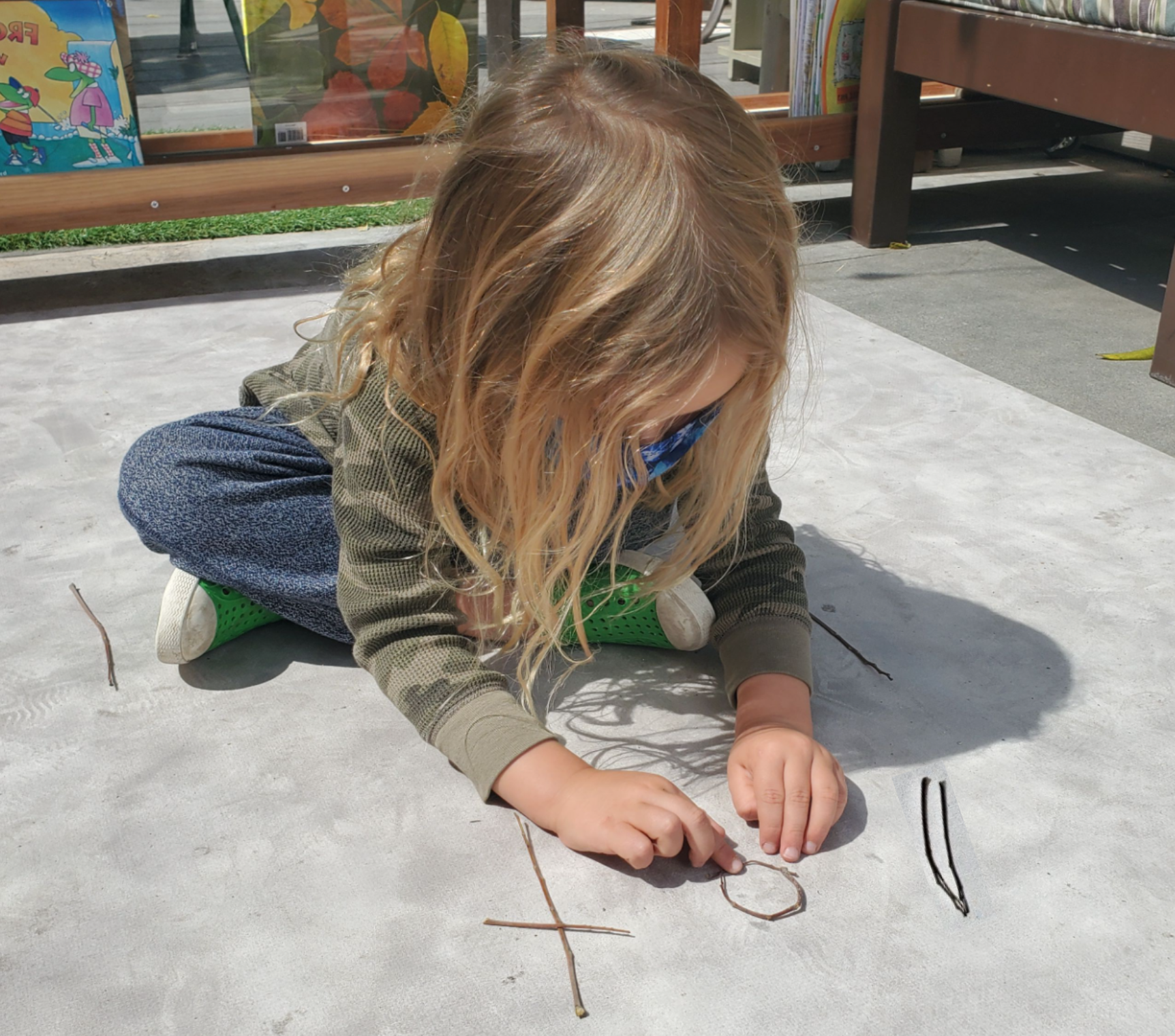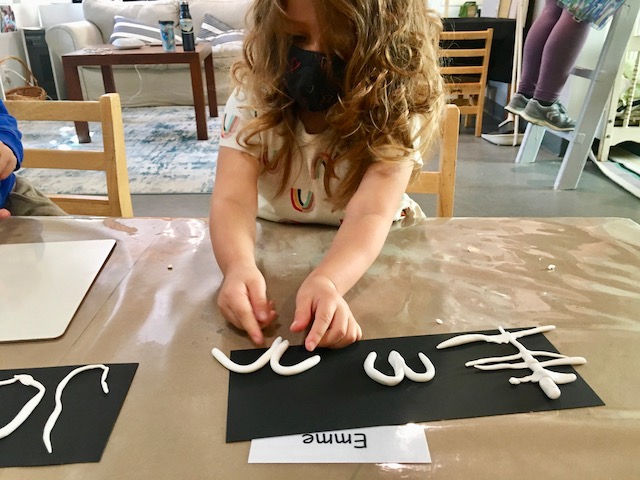 With the stems falling from the tree in the Middle Courtyard, the children formed letters to spell out a friend’s name. Children also shaped their names in sculpey clay which guided and gave more confidence in writing their names.