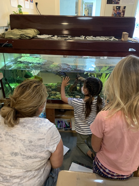 This week, the children had an opportunity to reconnect with Cody during his dry hour for wound care. As Cindy brought Cody around in his temporary recovery bin, the children again inquired why do Cody and Squirt have a permanent separation if they were friends?