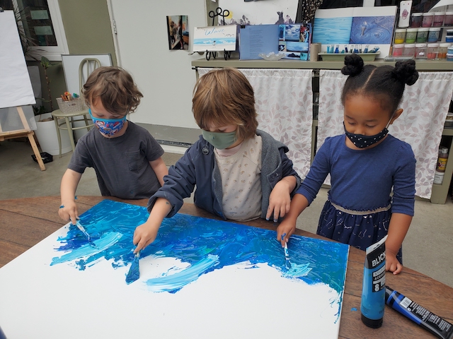 In the Middle Courtyard, acrylics were introduced to offer a more expressive paint for the children’s ocean scene. The children tested palette knives in place of brushes as they spread the thick paints across the surface of a large canvas. To offer a variety of textures and effects, acrylic mediums were also introduced to add the depth, motion, and sparkle of the ocean and waves. The beach is a joyous place for us all and a large context to bring into school. We will be making concept maps to hone in on the children’s interest and rich learning contexts. Thank you, families, for sending us pictures of the children’s beach experiences! The images have been great conversation starters.