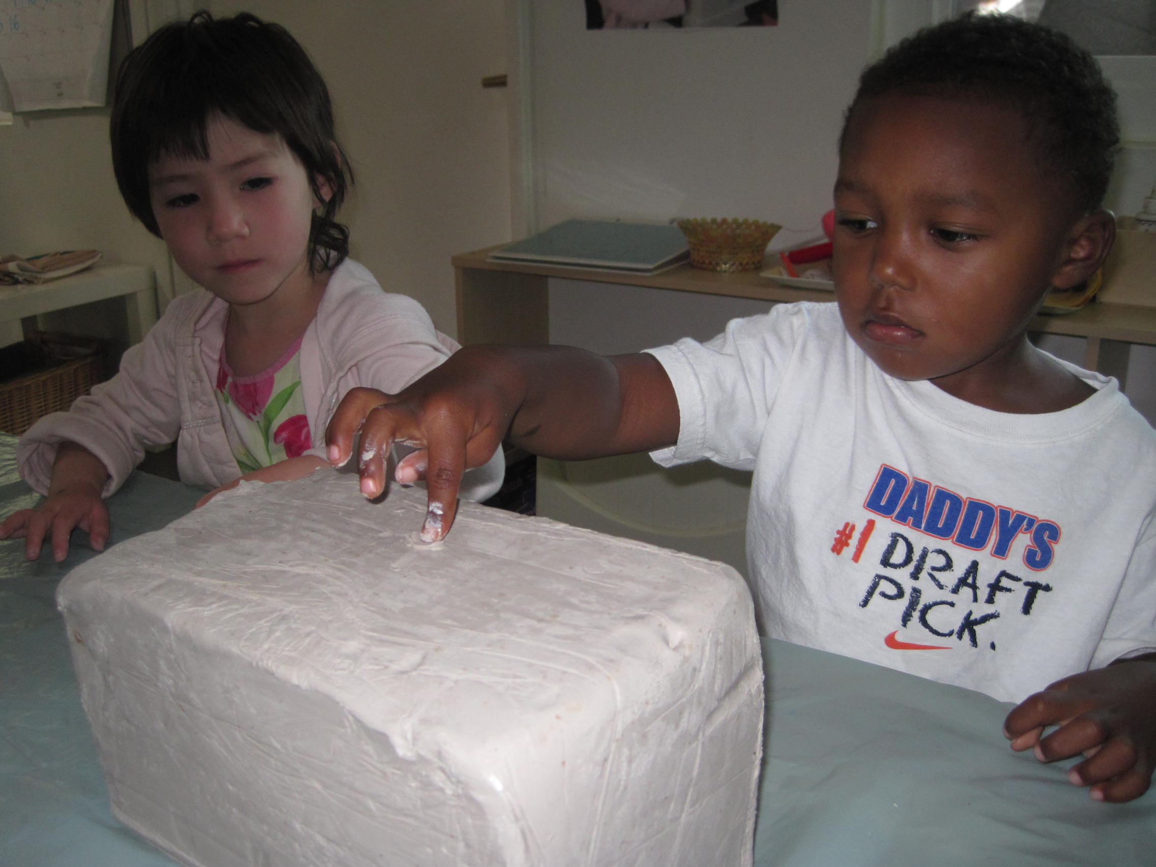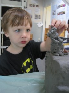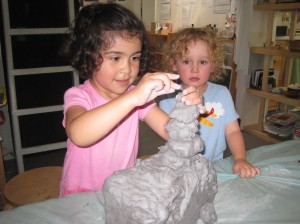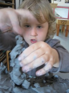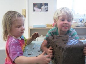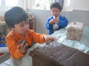 Since clay is a new material for some West Wing children, we want them to understand the properties of clay and to have an opportunity to explore it in an open-ended way. As teachers, our goal is that the children will understand the techniques that are used when working with clay and how the use of proper tools can add to the success of representing their ideas. We also feel that first experiences, when in small groups offer the children time to dialogue, compare and test their theories.