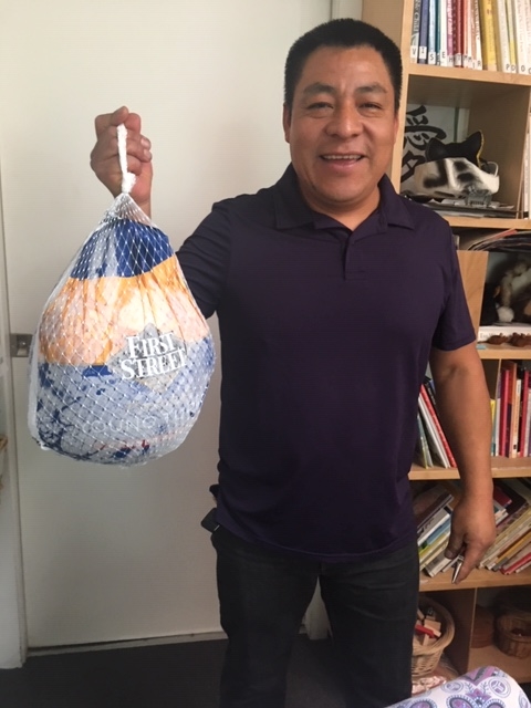 Then, Beto donated a frozen turkey to auction off for the staff! What a sweet surprise from the guy who fixes everything around here – now for the fixins…