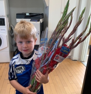 Flowers were brought by Isaac, Mika and Juliet