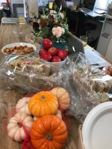 And last, but not least, it was our monthly catered lunch for the staff and Monika (Julian, EW) brought sandwiches, Genna (Gia, WW) brought donuts. Laura (Ava, EW) brought drinks, chips and apples, and along with Jess (Chase, EW) pumpkins for the classrooms! We are so spoiled – and we LOVE it.