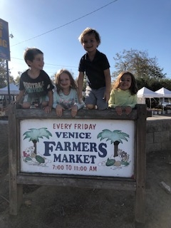 Chris (Ennio’s dad) accompanied Teacher Roxanne and friends to the Venice Farmers’ Market where the children visited with favorite vendors and brought home fresh flowers for Roleen’s Saturday class from Santa Monica College.