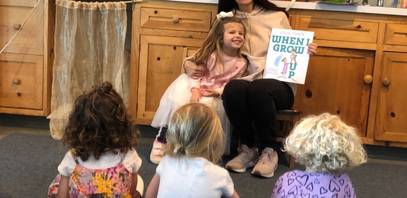 Erika and London shared When I Grow Up at the morning circle in celebration of London’s birthday!
