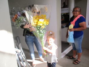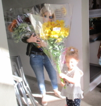 Flowers galore! Lucy C. (WW, obscuring mom, Lisa with flowers in this photo) and Eli showered us with beauty.
