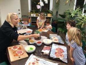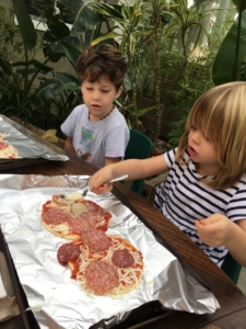 And there was a pizza making moment with Laura (Ava’s mom, EW) that had everyone stacking unusual toppings on their pre-cooked slice, then picking them off to eat a cheese pizza! It was super fun for all.