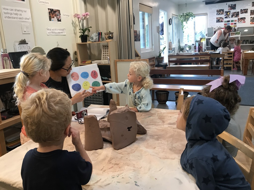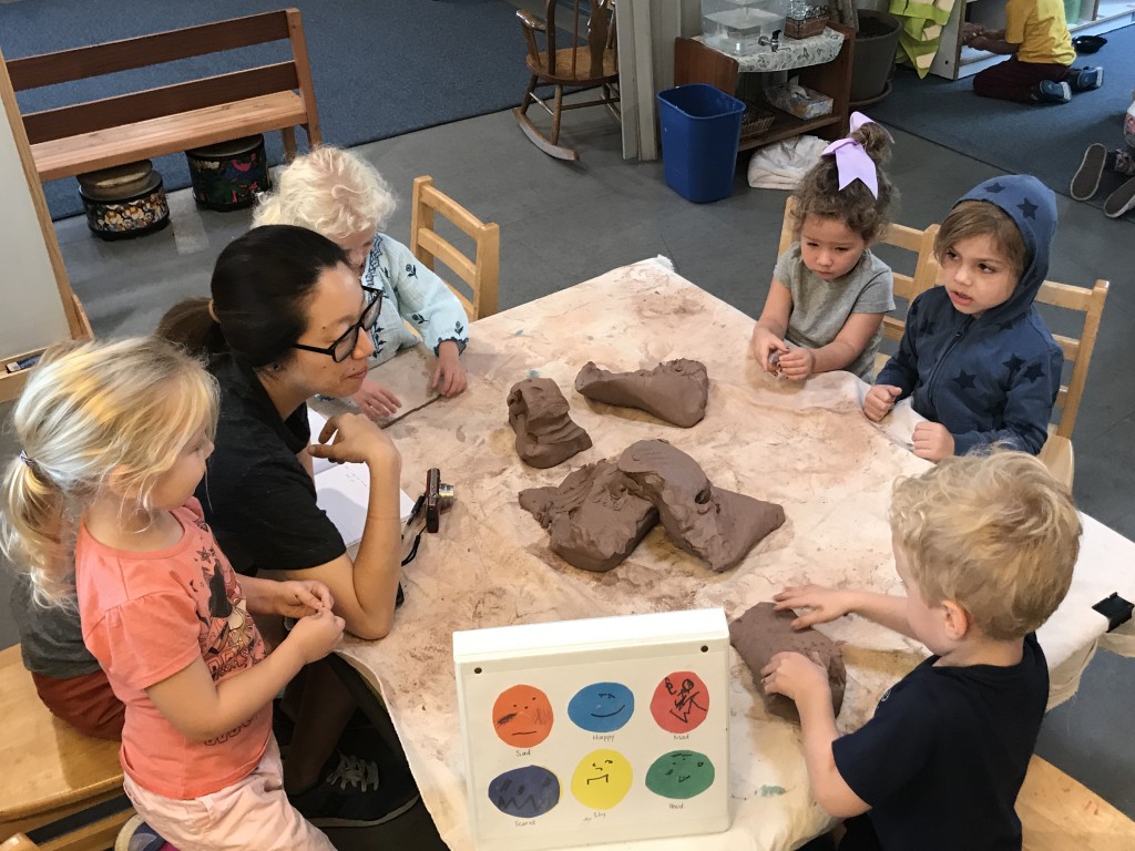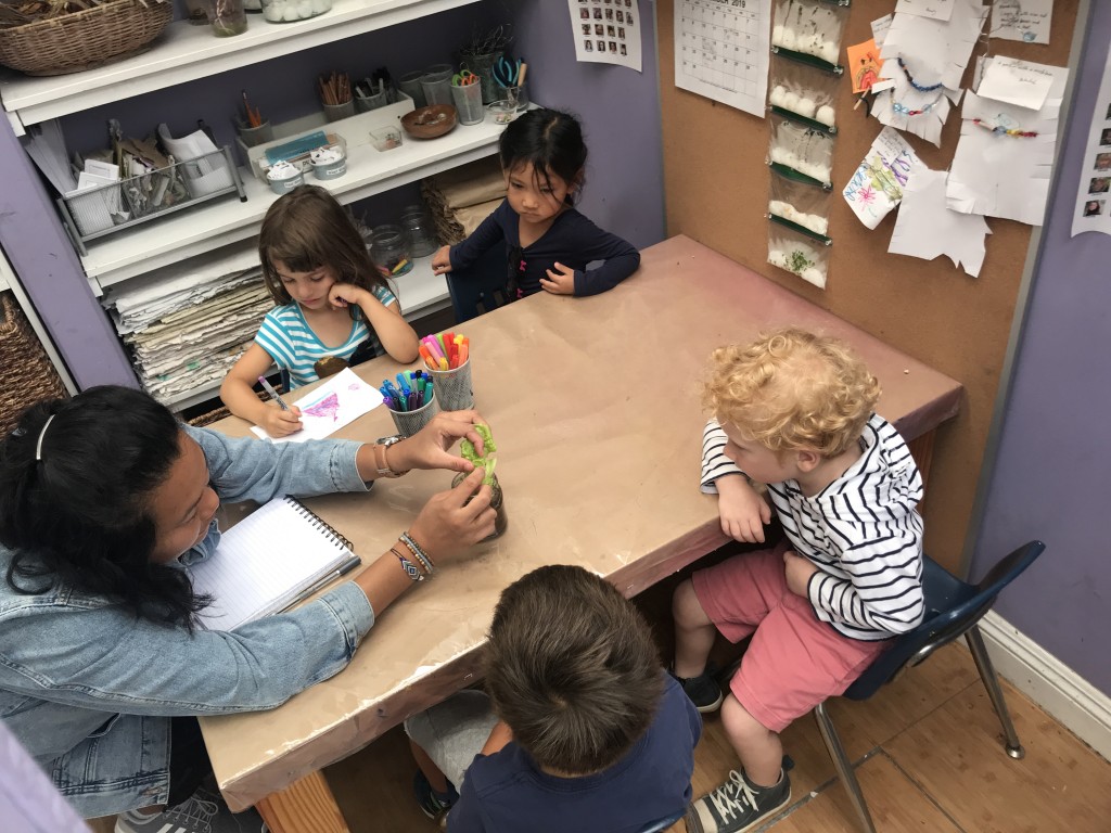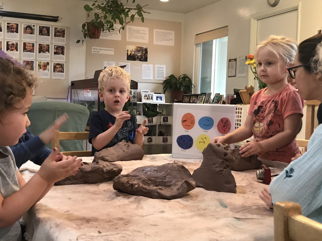 All I can say is I still cannot believe my daughter goes to school here! I did not realize how much interaction there would be during the invitation to pick an activity. It is such a special and wonderful moment to watch – some children in the WW were able to see what their friends wanted to play with, then this creates a whole other conversation among them. Overall, the kids were fully engrossed with their sensory activities, whether its with clay, nature, mixing colors or building structures.