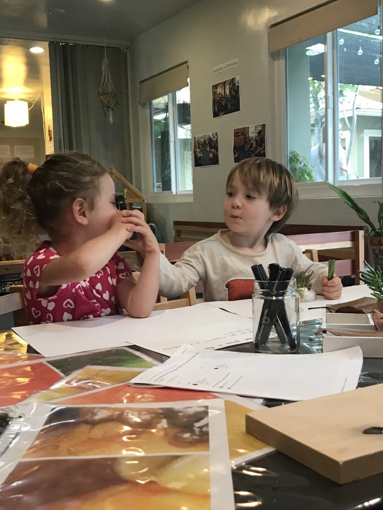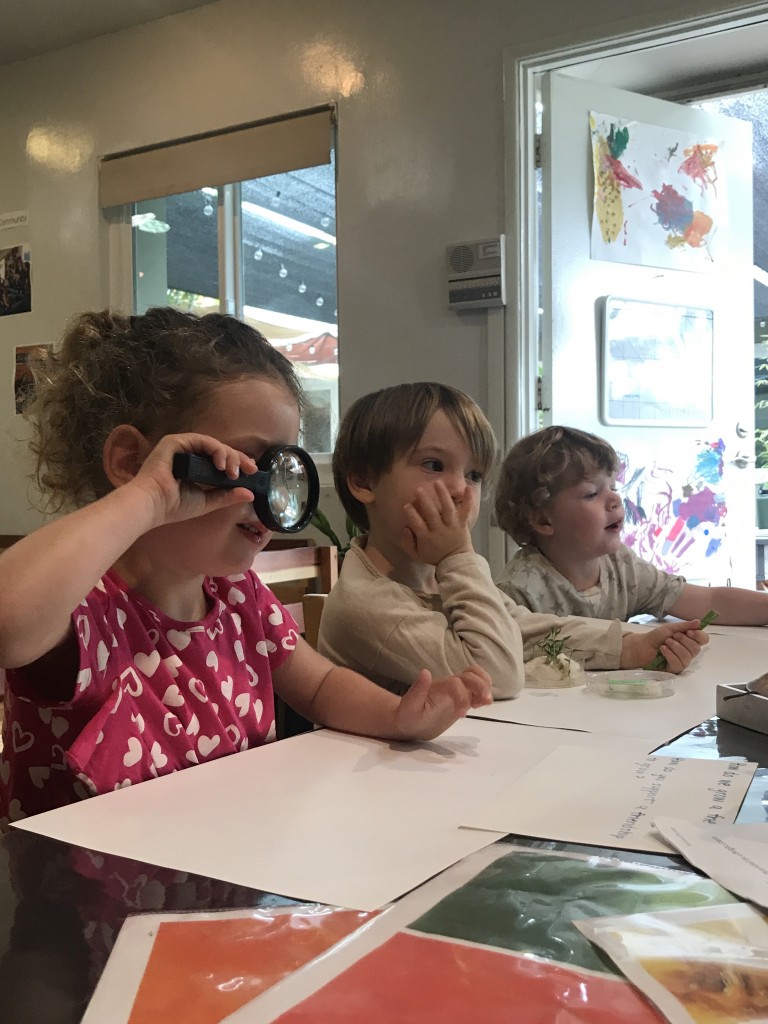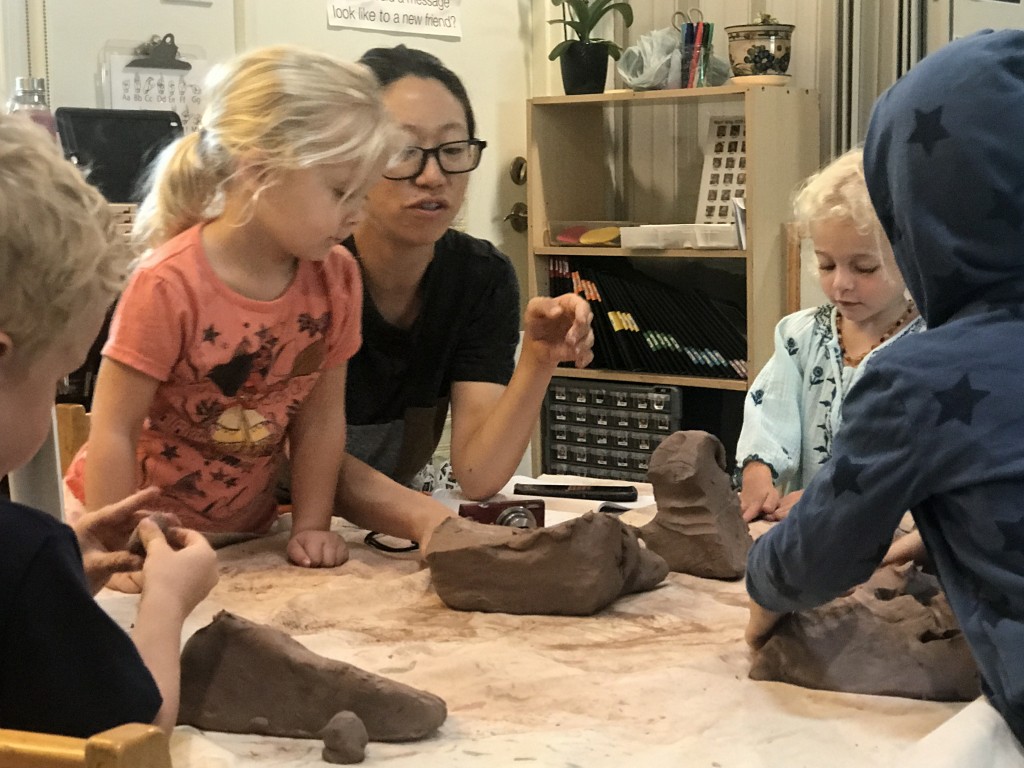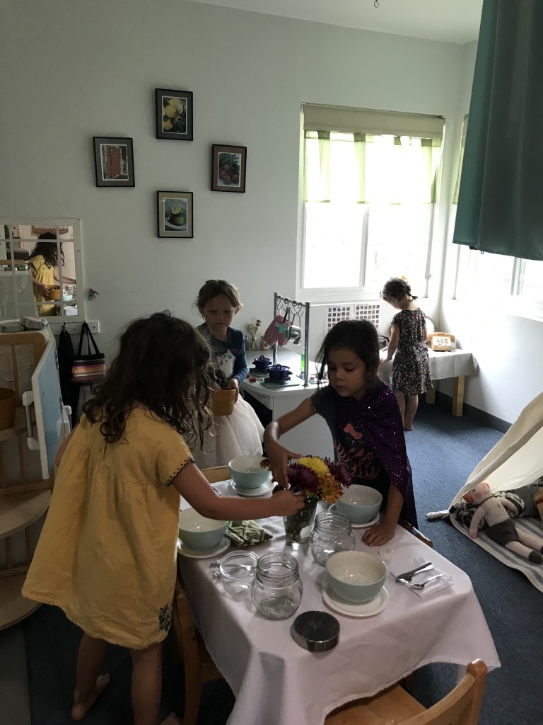 All I can say is I still cannot believe my daughter goes to school here! I did not realize how much interaction there would be during the invitation to pick an activity. It is such a special and wonderful moment to watch – some children in the WW were able to see what their friends wanted to play with, then this creates a whole other conversation among them. Overall, the kids were fully engrossed with their sensory activities, whether its with clay, nature, mixing colors or building structures.