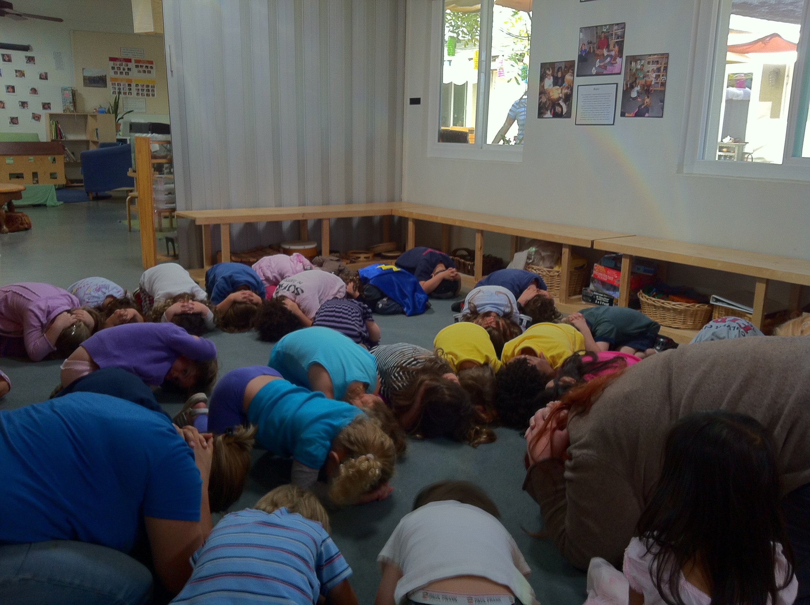 Today we practiced for an earthquake drill in the East and West Wings. We talked about what to do when your teacher says “drop and cover”.