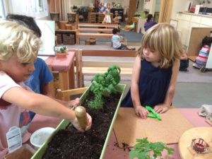 Teacher Jessica: We can’t eat all the leaves right away. The plant uses the leaves to grow but we will be able to pick them occasionally and taste them or even put them in the dehydrator so we can add them to the seasoning jars in the House Area.