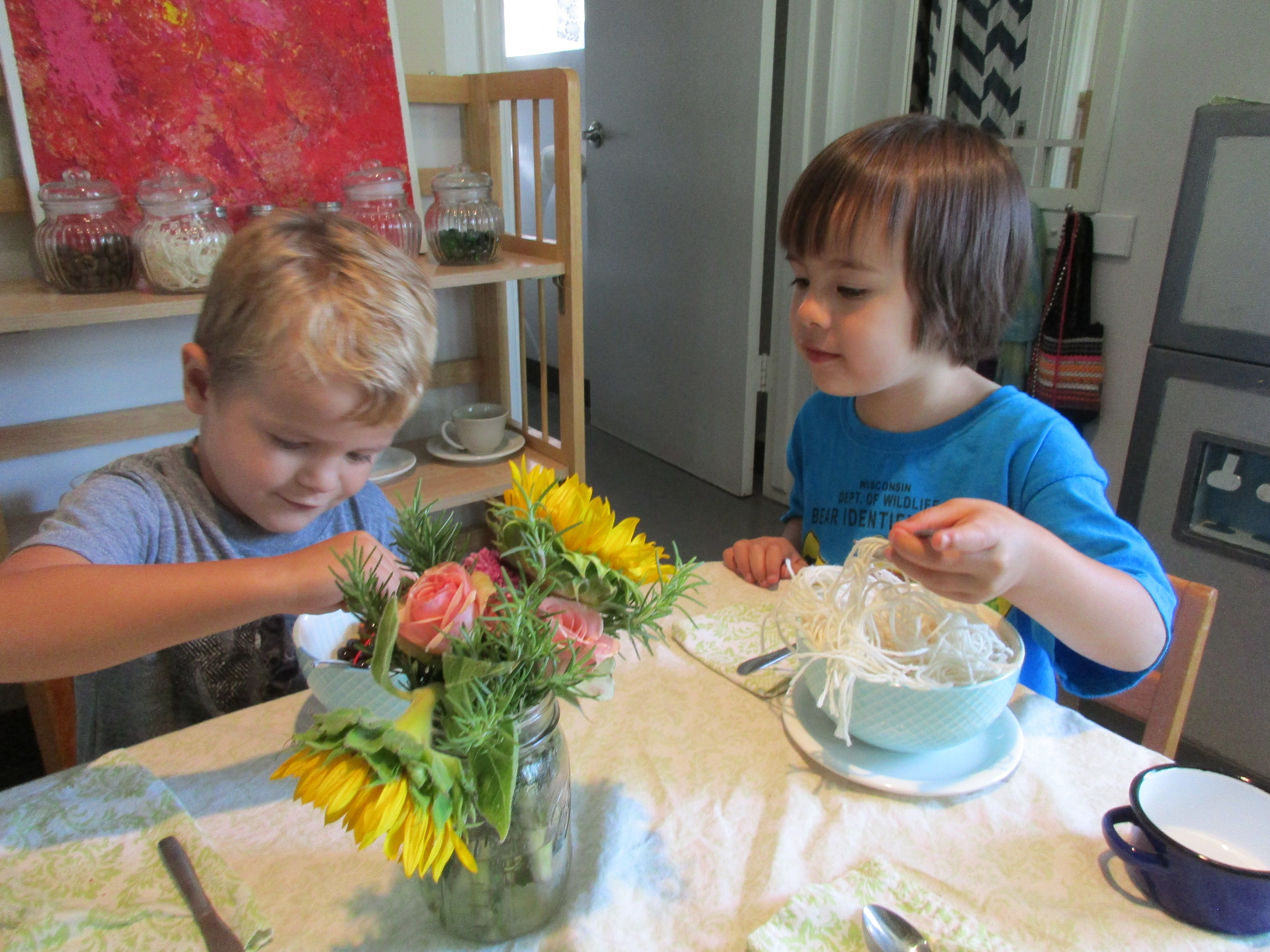It’s during these first few days that we take special interest in just observing how the children are using the spaces and already the teachers have noticed a deep interest in dramatic play that includes books, storytelling, familiar role playing, and fantasy play.