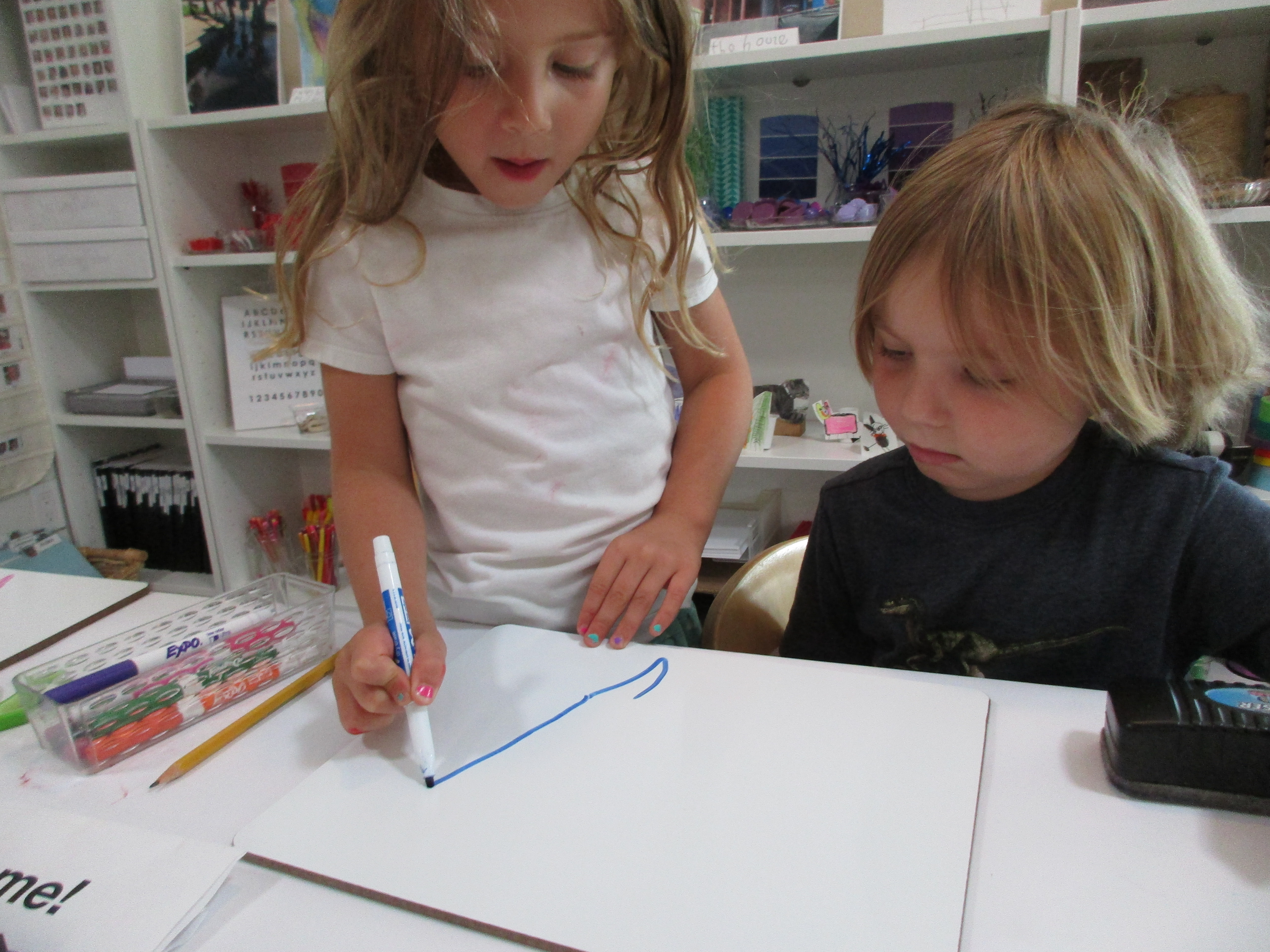 Peers are supporting each other in overcoming challenges to represent their ideas.