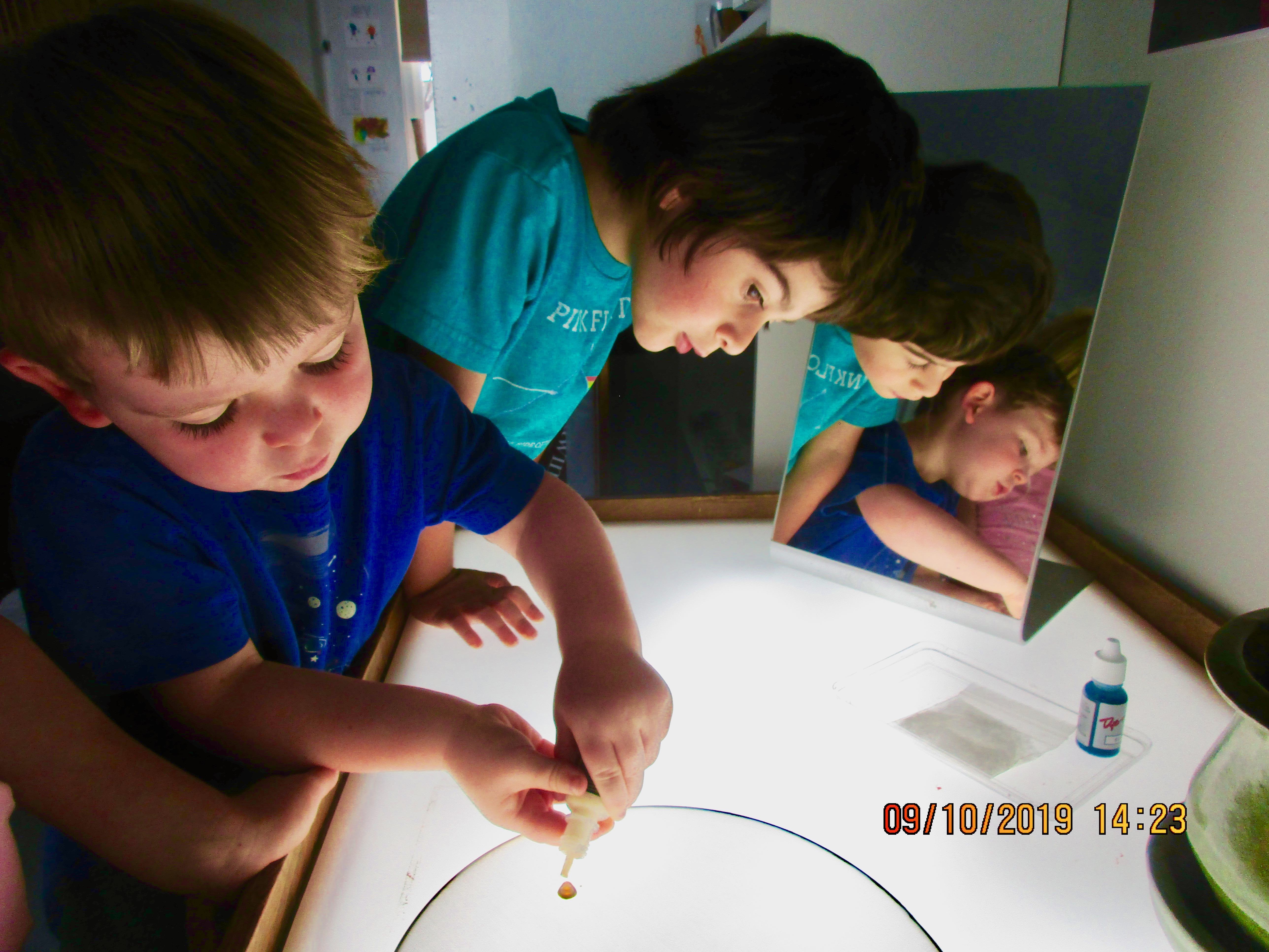 With the intention of revisiting previous experiences and exploring new possibilities, the children have been meeting in small groups to tour the Atelier.