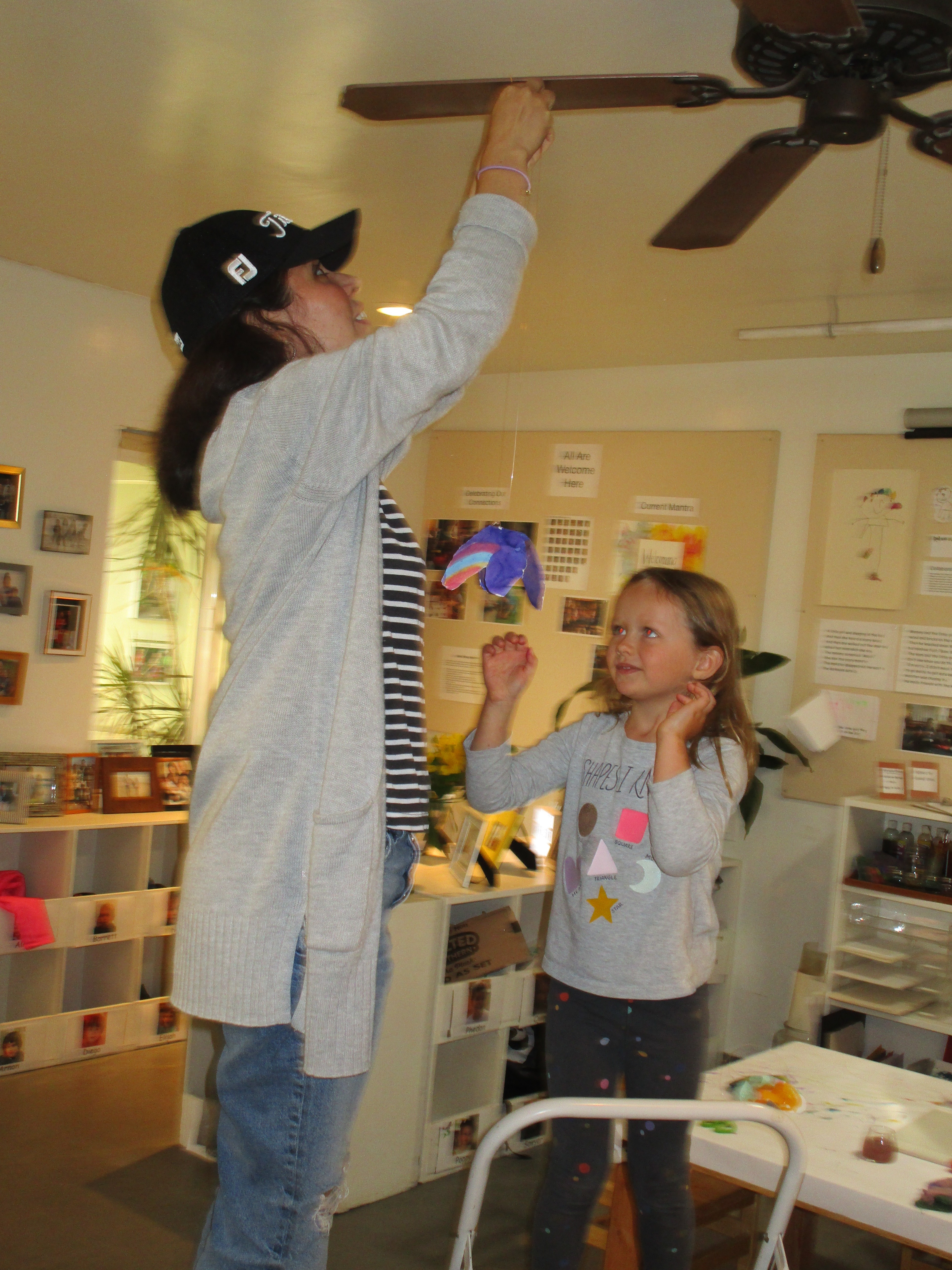 At appointment time, the children in the Communication Center can continue developing their interest in three dimensional, representational works. One early project was making fluttery flying butterflies they then suspended from fans. It’s a beautiful project, allowing children to contribute to the classroom environment, but also showing an intention of creating “class pets” they could lovingly admire.