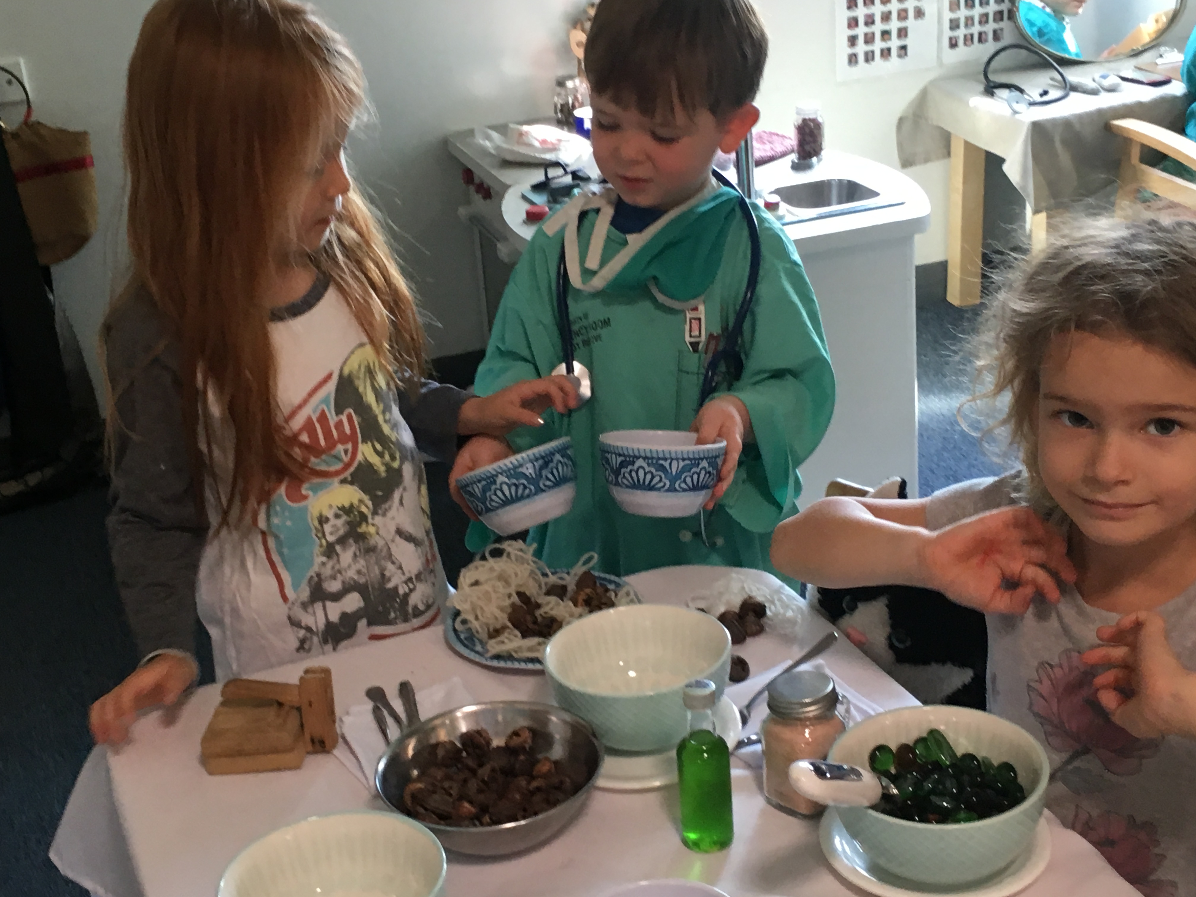 The computer and large monitor by the front door have been used to display a shared Word document that allows children to explore letters and word making. It is also available for children that want another option of “signing-in” in the morning time. The monitor will occasionally show a slideshow of the children themselves, making connections with each other and the materials. It’s another tool for Reflection and makes visible the concept of their Invisible Strings connecting the community.