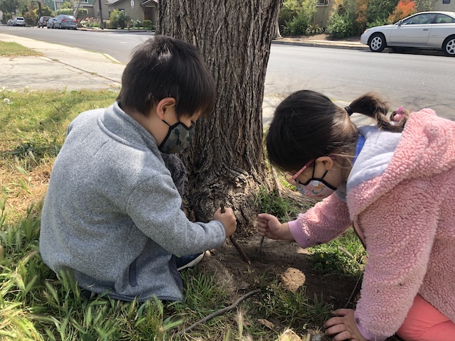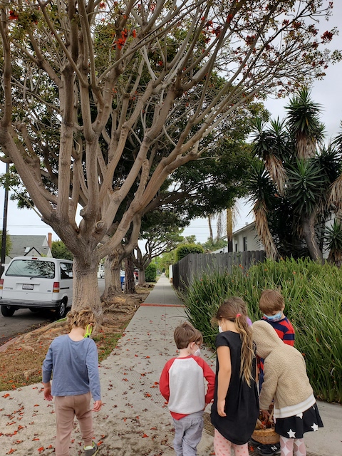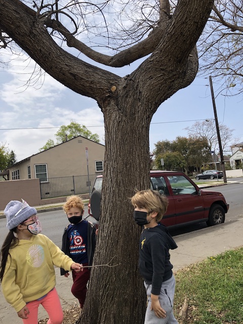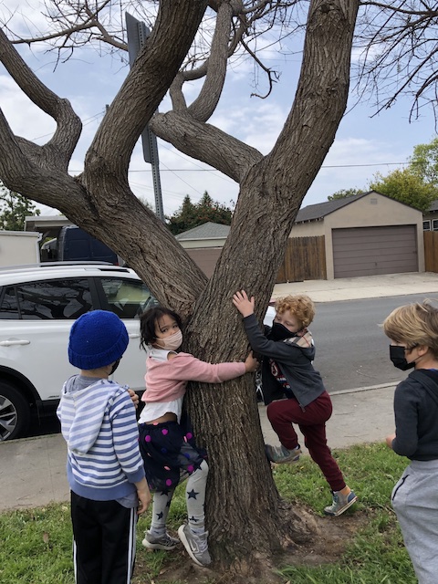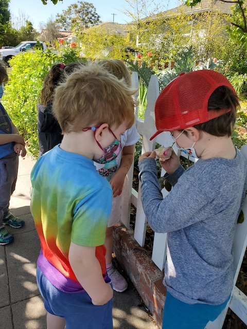 It’s amazing to be reminded of the children’s affinity with nature. In our suburban setting, they see the wilderness among the houses, apartments, and businesses. While they very well notice neighbors and people and their own physicality, we wonder if they connect themselves with this neighborhood. It is always our goal on these walks to invite a sense of belonging in our community and we hope to dive into our documentation to share with you this recognition of connectedness.