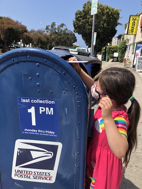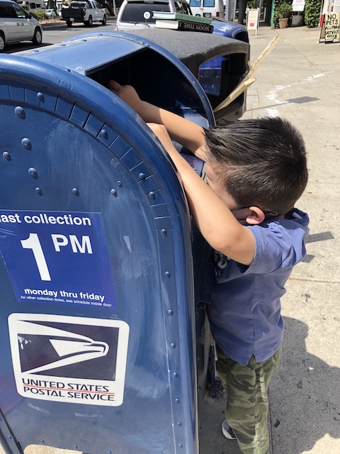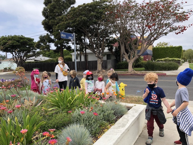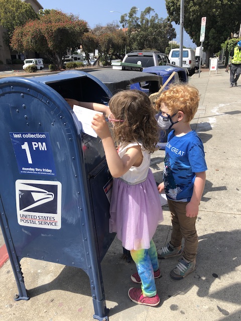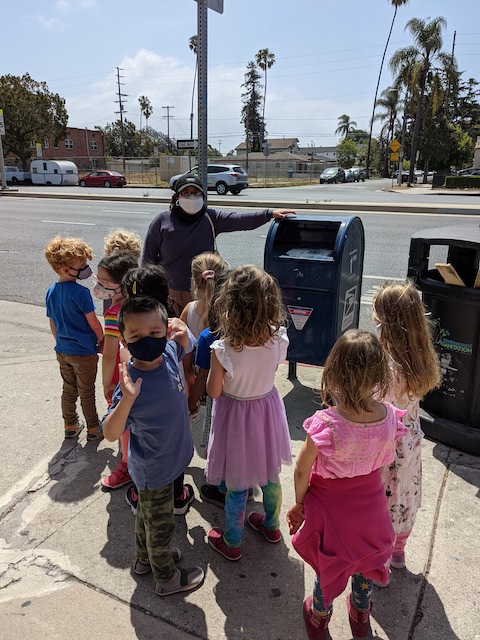 We see how walking to the mailbox to drop off mail for the Mint children at the Venice Post Office is giving the children an opportunity to connect in a tangible way to our Mint friends. We thought navigating the traffic lights, sidewalks, street crossings that they encounter on this busy pathway would result in a lot of safety, mechanical, or traffic talk. The walks have accomplished this and have offered us a whole lot more.