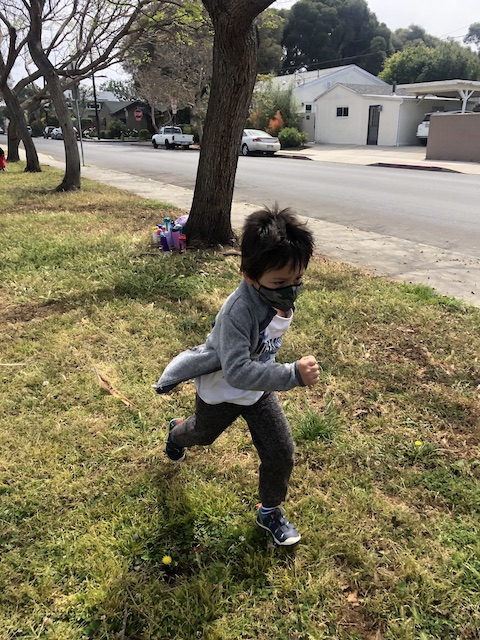 Colin: I like finding sticks on our walks. I like when I see the neighbors and I say “hi” and they say “hi” back to us.