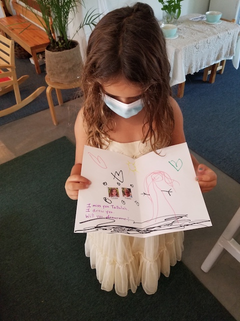 Once the mystery of the East Wing mailboxes had been solved, the children’s excitement shifted into creating messages for their friends. The first batch of mail included birthday cards and notes that engaged the entire group. The ones that followed were more individualized. Checking the mailbox in a group setting created a context for the children to feel the emotions of their expectations being met or unmet. What was evident was both the children in the Aloe Vera and Basil group experienced similar feelings when they opened up the mailbox and discovered what was, and wasn’t inside.