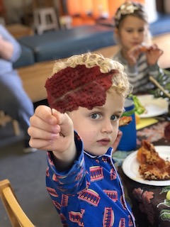 Presley: I’m thankful for my brother Cru because I read him books in the morning and my momma because she takes me to her work and daddy and I go boogie boarding.