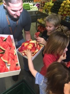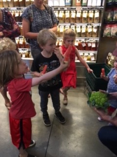 Roxanne loaded the TAP cards and off they went. They tried Macambo beans, cauliflower, watermelon, apples (and Peter made apple juice right there for us!) and talked about superfoods and their properties. The children felt right at home and Jess and Katherine bought us passion fruit and camel’s milk!  We’ll be tasting that during afternoon snack today!