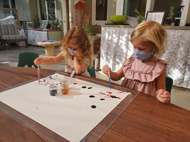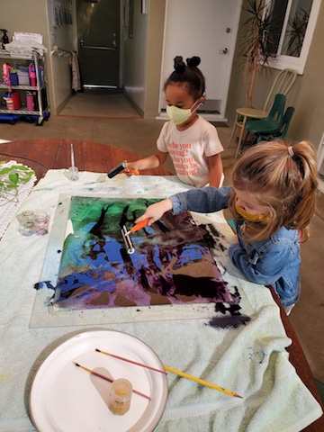 The children took turns sharing ideas and we came up with a list of things to do. The group agreed we would need wrapping paper, a box, ribbons, and bows, and Oona added that we should send it with blessings. Over a period of many days, we painted paper for wrapping, selected and cut ribbons, and created a plan for delivery.