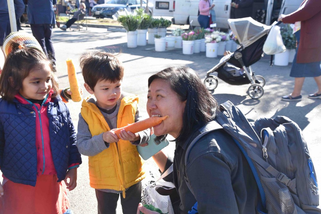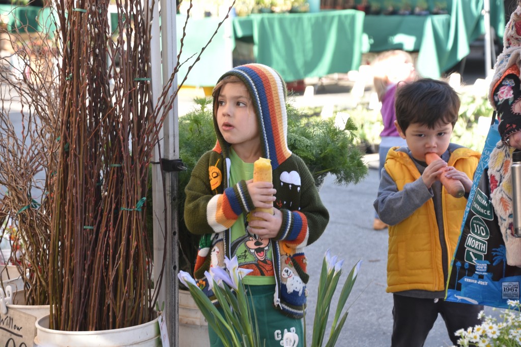While enjoying the produce, plants and people, our friend, Farmer Pete sold us the desired plants and farmer Alex offered carrot ‘samples’ to the kids.