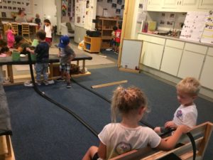 We talked about the things that are going to be the same like some of the materials, pens/pencils, clay, wire, building materials, house area toys, puzzles, the outside spaces, and the teachers. We made a list of the things we liked using in the East Wing, like face paints, rocking chair, balls and ramps, trains, costumes, and a list of the things the children wanted to bring from the West Wing, like their journals, favorite songs, baby dolls, and favorite books. We agree that talking together about all the changes feels very supportive.