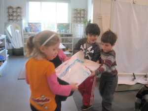 These children brought this idea back to the rest of the group at the big circle after nap time. Zachary was visiting the school for his first time as we met. They noticed that he was standing close to his mommy, Jennifer and sister, Zoe.