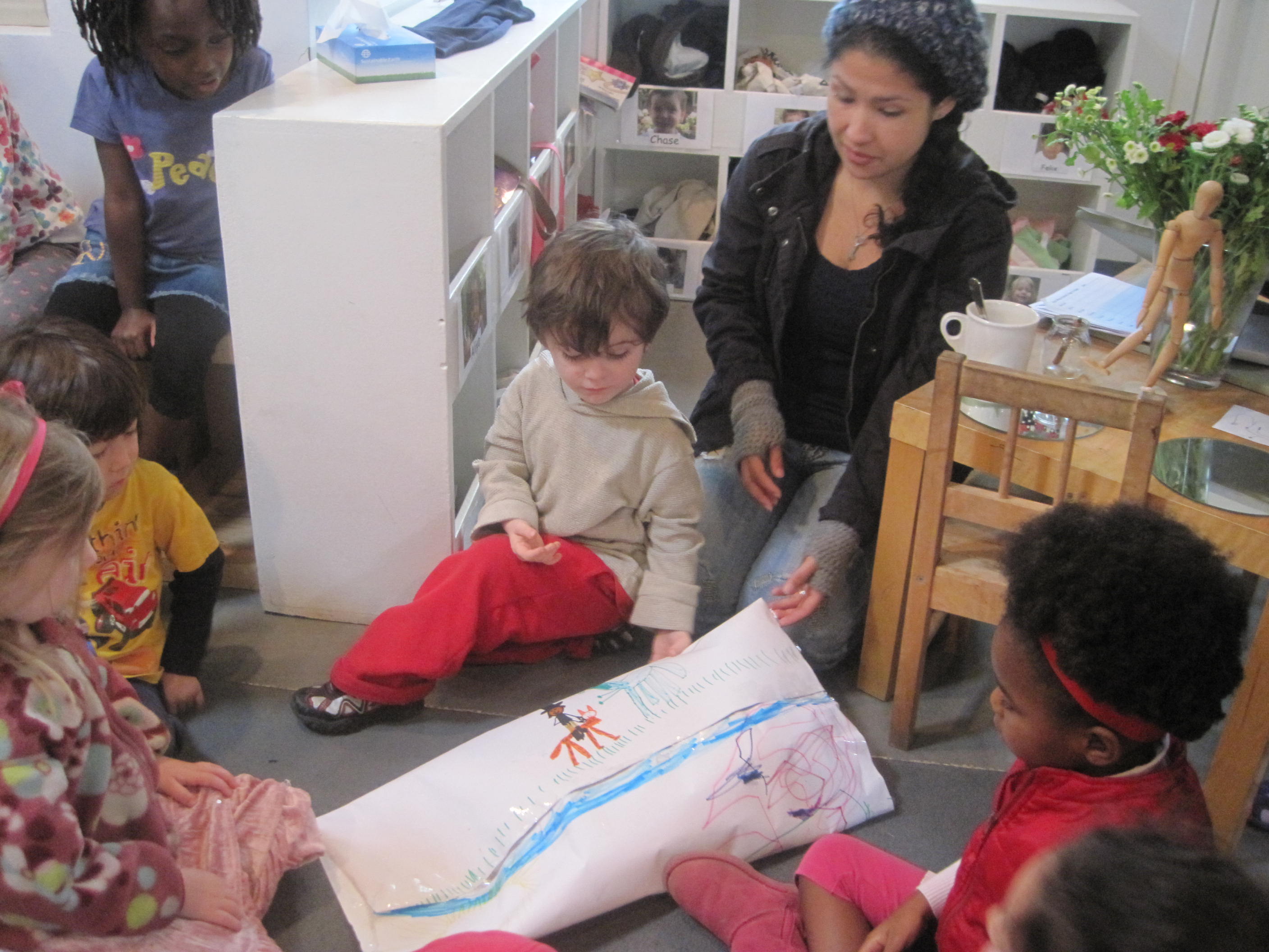 In order to support our East Wing intention, Paola opened up a dialogue by asking the children to put themselves in Zachary’s state of mind and think about what he might be feeling as he prepares for his first day of school.
