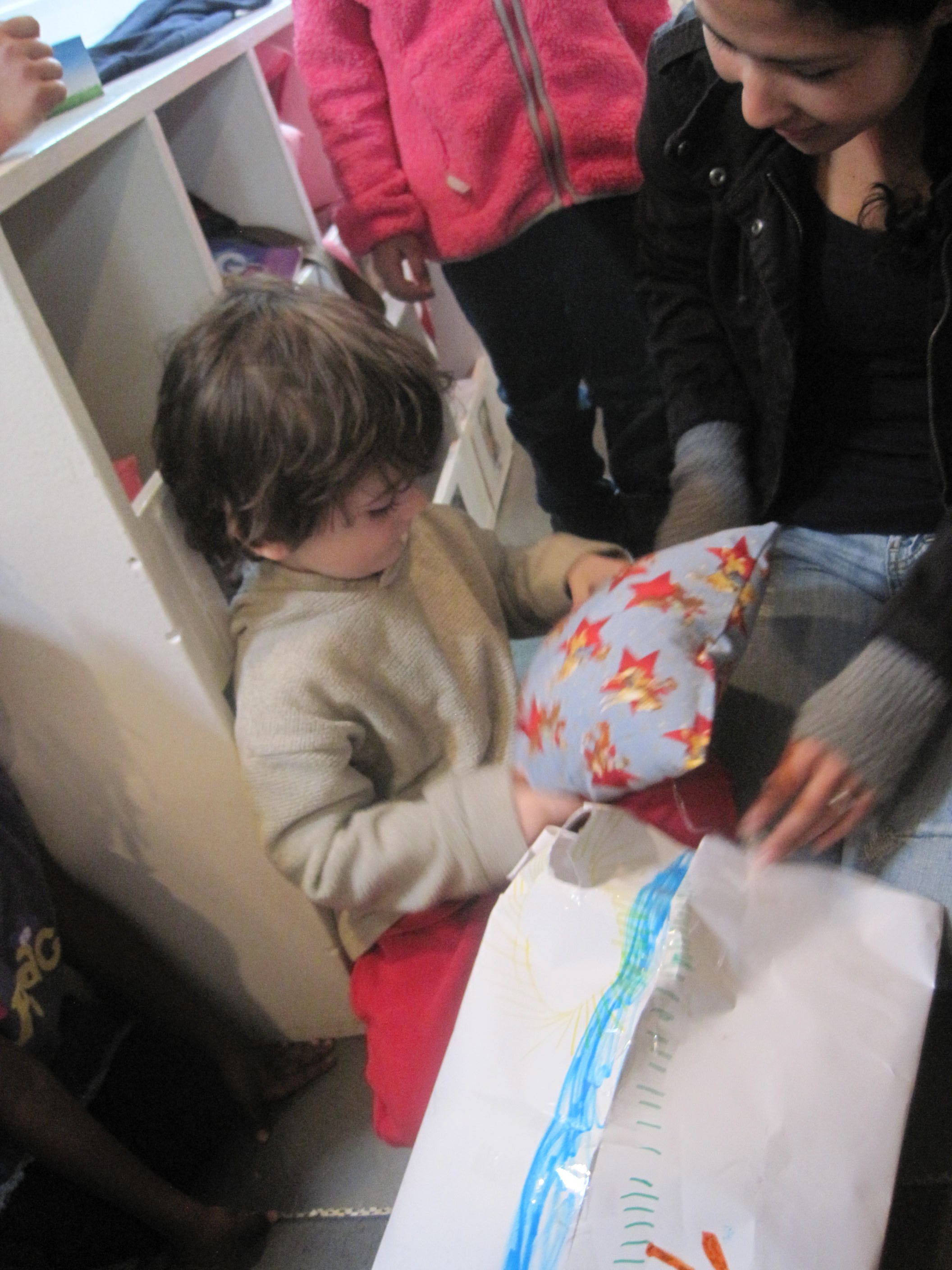 They presented Zachary with the pillow they made. We all hope this gesture will help settle Zachary into our sweet community of friends.